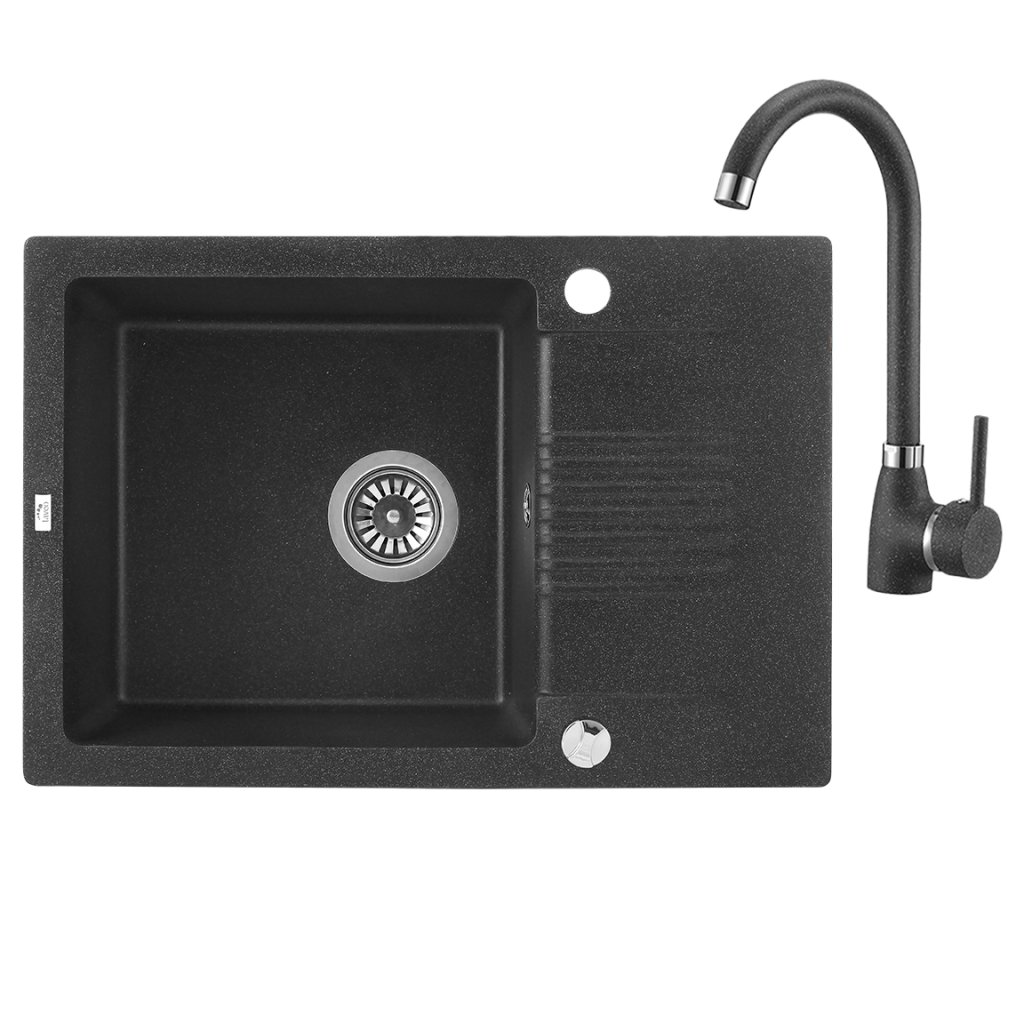 Dřez 1 komorový s odkapávačem Celia, granit - SJCG713T, černý v setu s pákovou baterií
