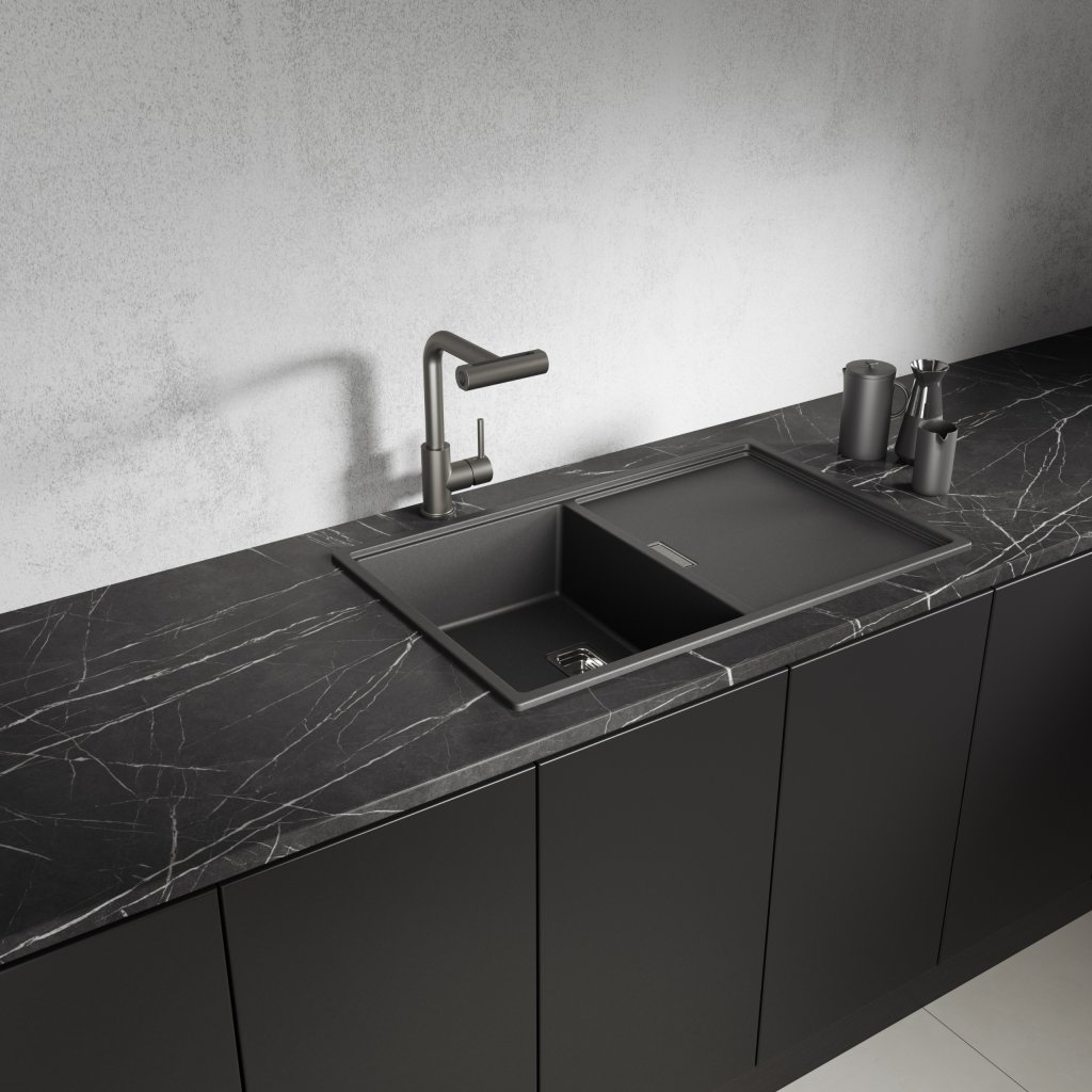 Dřez 1 komorový s odkapávačem Tonga, granit - SPT_711Y, černý