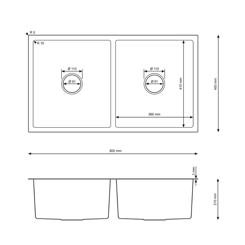 Dřez 2 komory, nerez - VE-8045B, 80x45 cm, grafit