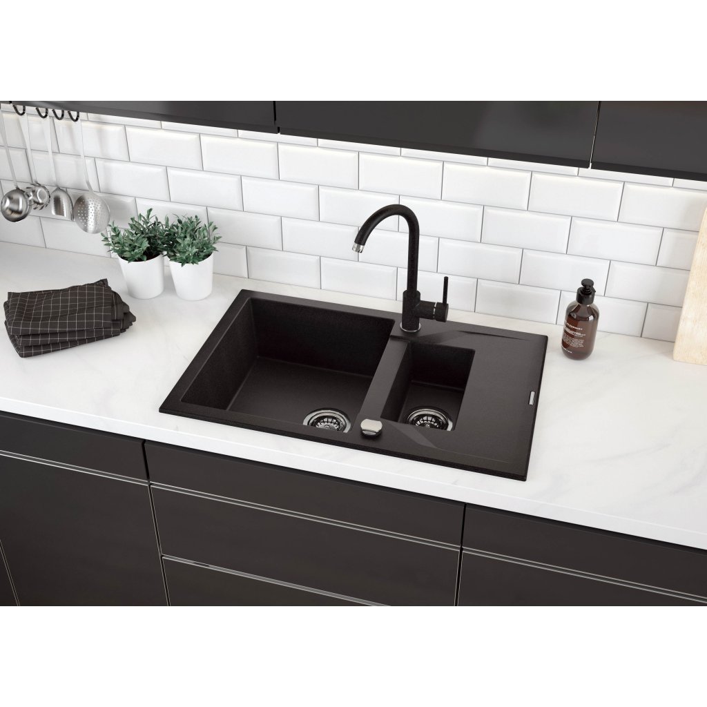 Granitový 1,5 komorový dřez Andante s jednou prostornou komorou a odkapávačem. Úzký a nízký okraj splývá s pracovní deskou a zůstává v decentním kontrastu s pracovní deskou a obložením za kuchyňskou linkou. Dřezy Andante z originální kolekce Michała Łoje také zapadají do konceptu maximalizující využití kuchyňského prostoru. Hluboká mycí komora jistě potěší milovníky vaření a skvěle se osvědčí v moderních kuchyních. Jde zde ruku v ruce ergonomie, funkčnost a elegance s nadčasovým vzhledem a kvalitním materiálem.Dřezy z této kolekce jsou vyrobeny z extrémně tvrdého a otěruvzdorného granitu a jsou odolné proti změně barvy, poškrábání, tepelnému šoku, teplotě až 250 stupňů a nárazům. Dřezy Andante mají také hydrofobní vlastnosti, což znamená, že jejich povrch molekuly vody odpuzuje.
