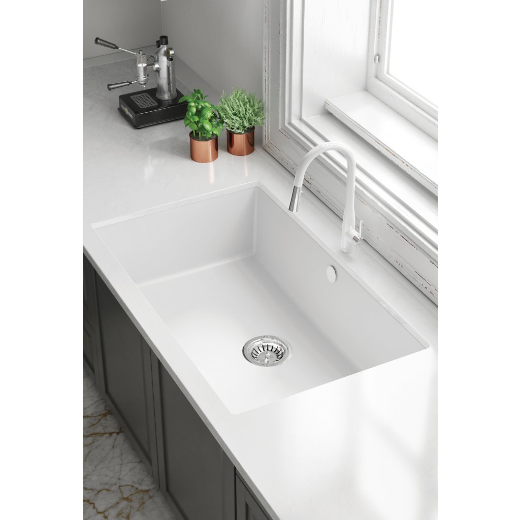 Dřez Corda Flush kombinuje funkčnost s vynikajícím designem. Je vyroben z odolného granitu. Granit je odolný proti nárazu, vysoké teplotě a teplotnímu šoku - v souladu s evropskou normou PN-EN 13310. Výrobek je povrchově upraven tak, že dřez má hydrofobní a antiseptické vlastnosti. Sada obsahuje ruční uzávěru dřezu (zátku) a sifon Space-saver, který šetří místo ve skříni.Vlastnosti granitu Deante: odolnost proti nárazu, vysoké teplotě, změně barvy, tepelnému šoku