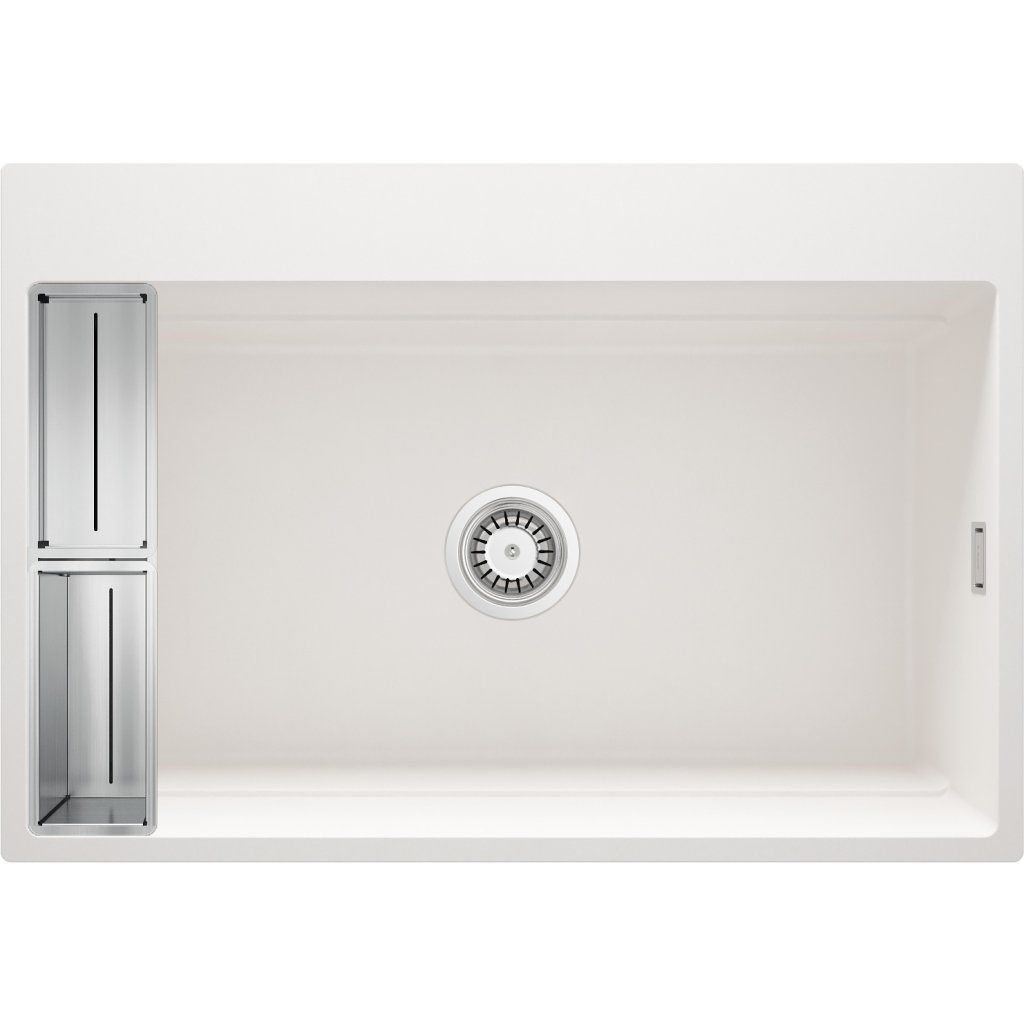 Magnetický dřez o délce 760 mm v alabastrové barvě je perfektním řešením pro lidi, kteří oceňují funkční a moderní řešení v kuchyni. Dřez je vybaven magnety zapuštěnými do hmoty, díky kterým můžete pohodlně namontovat koše na boční polici a vytvořit tak další prostor pro uložení kuchyňského náčiní. Dřez je vyroben z granitu s antiseptickými a hydrofobními vlastnostmi, zajišťujícími odolnost a hygienu.