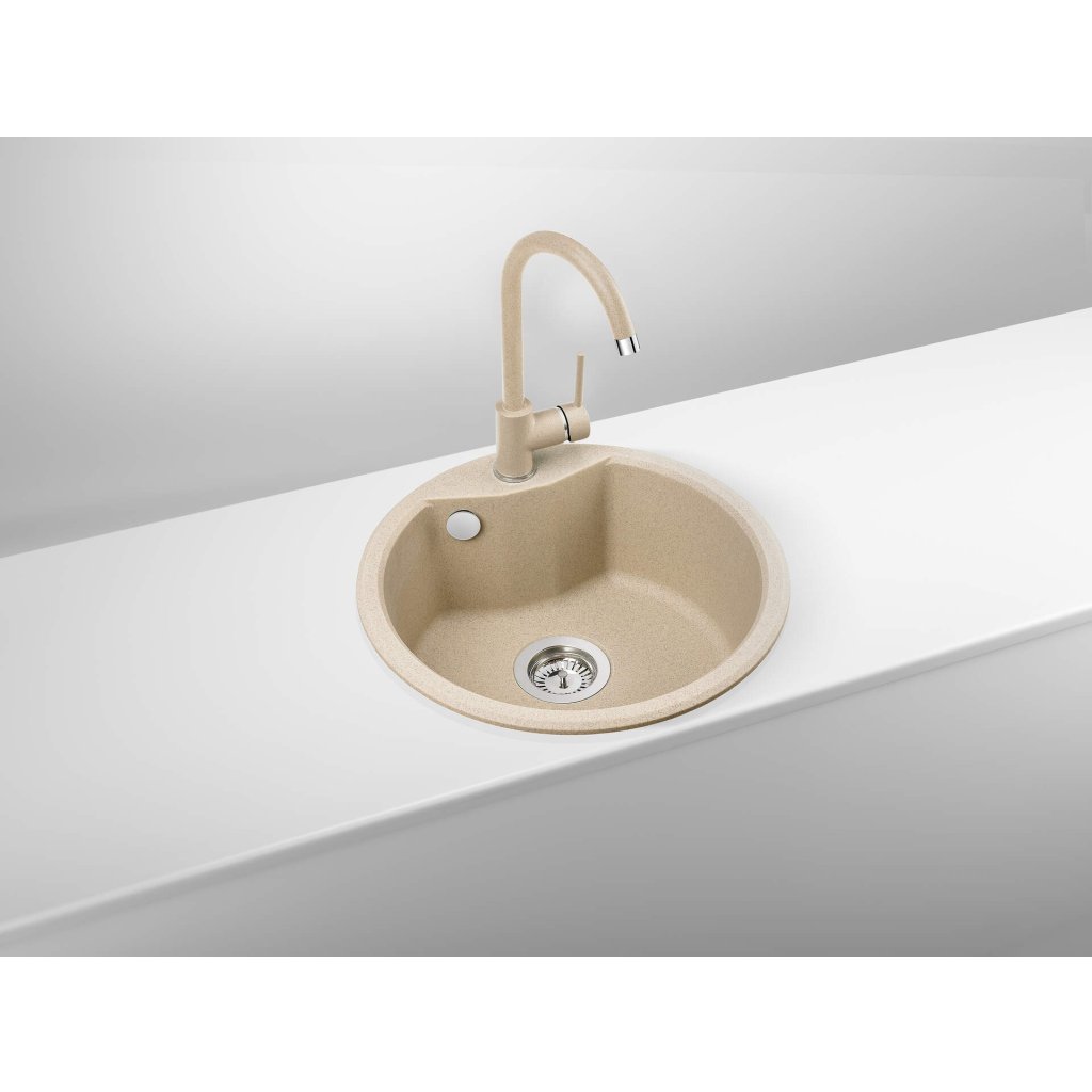 Granitový dřez Solis je ideální do malých prostor. Kulatý dřez je vyroben z odolného materiálu proti poškrábání, proti nárazu, teplotnímu šoku a změně barvy - v souladu s normou PN-EN 13310.Vlastnosti granitu Deante: odolnost proti nárazu, vysoké teplotě, změně barvy, tepelnému šoku