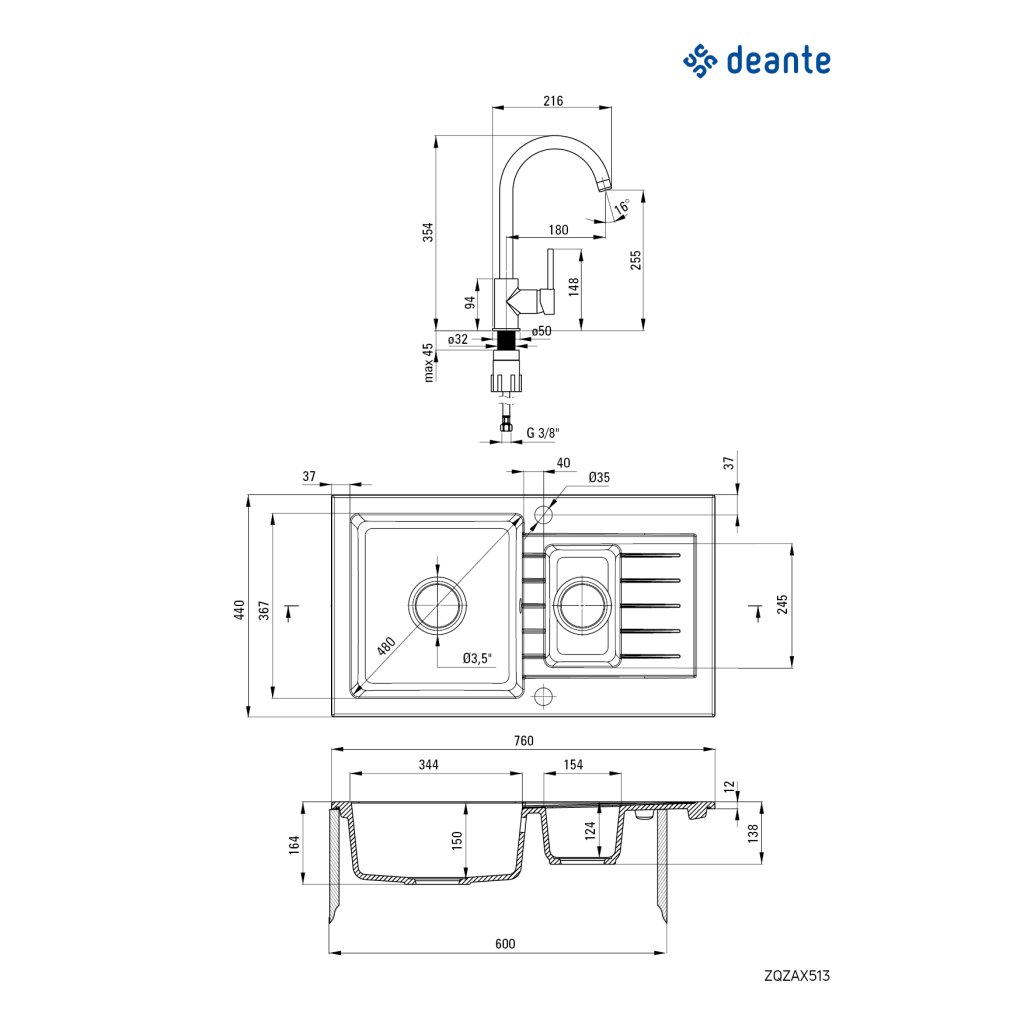 Granitový 1,5 komorový dřez Zorba s jednou prostornou komorou a druhou menší komorou na zeleninu s odkapávačem je produkt, který se bude skvěle vyjímat v minimalistických nebo skandinávských aranžmá kuchyní. Součástí sady je také působivá dřezová stojánková baterie se zvýšeným tělem a výtokem ve tvaru U ve stejné barvě. Dřez je vyroben z granitu a má všechny výhody tohoto extrémně tvrdého a otěruvzdorného materiálu. Patří mezi ně odolnost proti změně barvy, poškrábání, tepelnému šoku, teplotě 250 stupňů a nárazu. Dřezy mají navíc hydrofobní vlastnosti, což znamená, že jejich povrch molekuly vody nejen odpuzuje, ale také se mnohem snadněji udržují v čistotě.Vlastnosti granitu Deante: odolnost proti nárazu, vysoké teplotě, změně barvy, tepelnému šoku