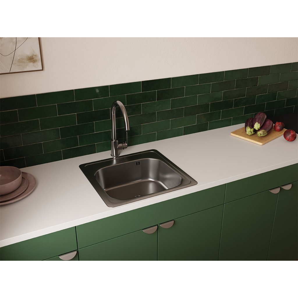 Stojánková konstrukce umožňuje snadnou instalaci přímo na pracovní desku nebo do otvoru dřezu. Díky praktickému systému jednoduché montáže je připojení baterie rychlé a bezproblémové. Tento typ instalace poskytuje flexibilitu a volnost při rozmístění kuchyňských prvků.