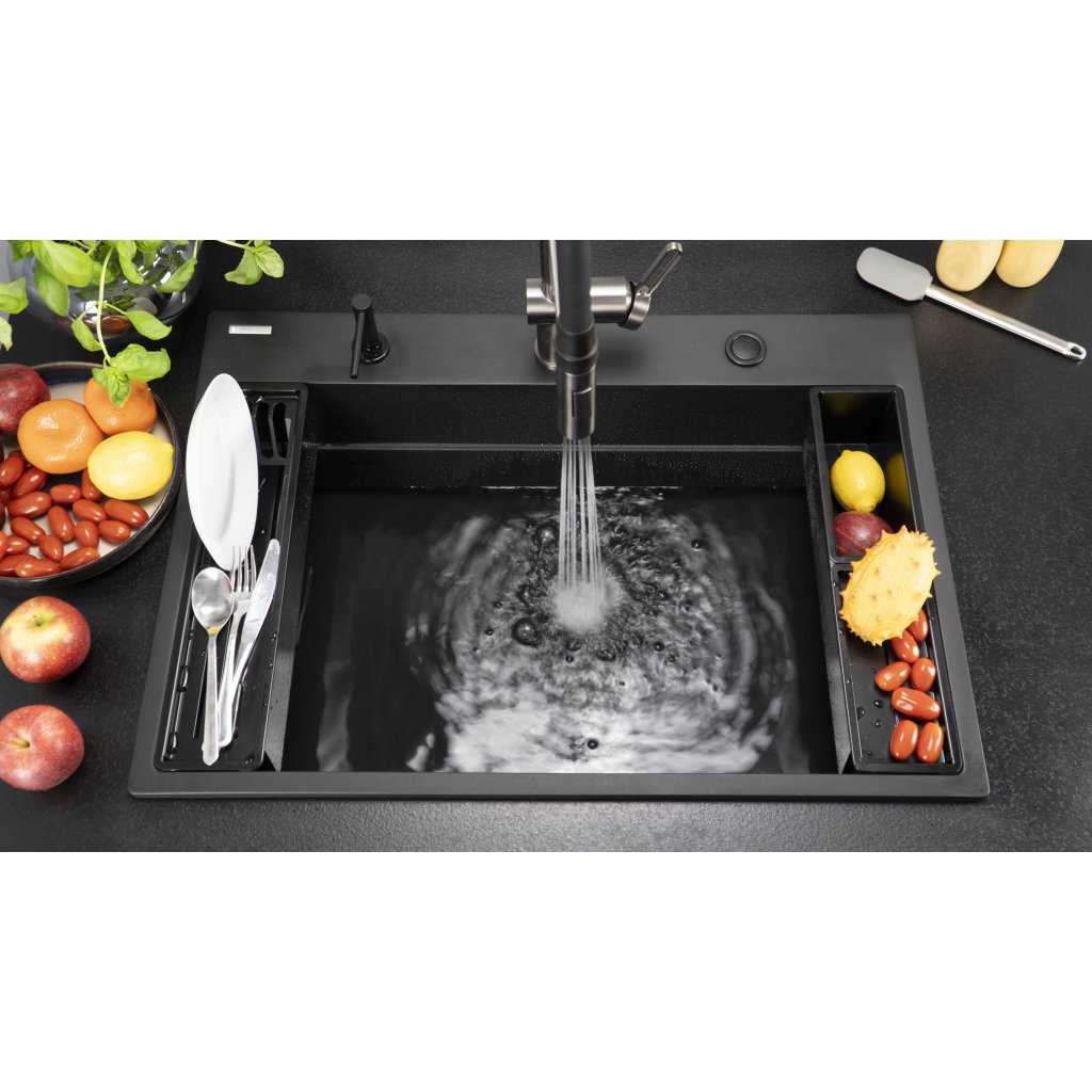 Kuchyňská baterie Magnetic je dokonalou kombinací klasiky a moderny. Flexibilní výtok usnadňuje mytí nádobí a udržuje pořádek kolem dřezu. Díky magnetickému držáku se výlevka vždy vrátí na své místo. Sprchová hlavice s dvojitou funkcí umožňuje snadnou změnu proudu z provzdušňovaného na dešťový, což zvyšuje komfort používání. Baterie je vyvedena v inovativní titanové barvě, která je odolná proti otiskům prstů, takže vypadá skvěle po celou dobu používání. Svým designem se perfektně hodí k řadě granitových dřezů Magnetic a vytváří ucelený a elegantní celek v moderní kuchyni.