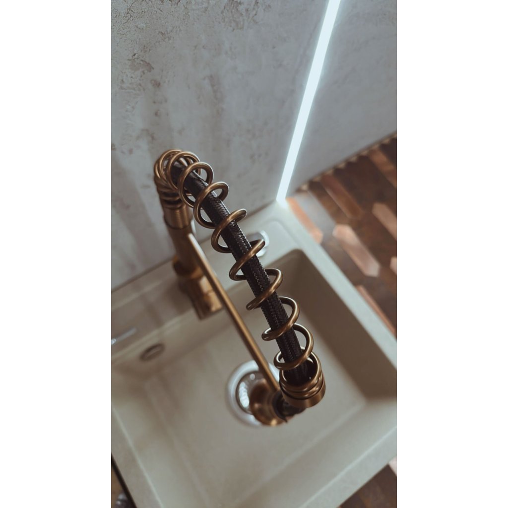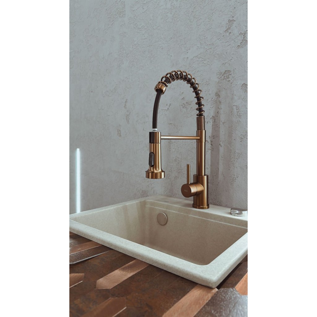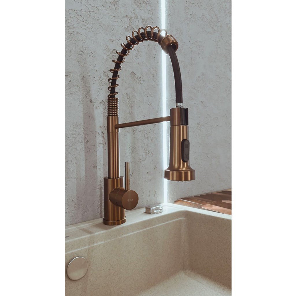 Dřezová baterie REA COLIN s flexibilním ramínkem a sprškou, měď kartáčovaná