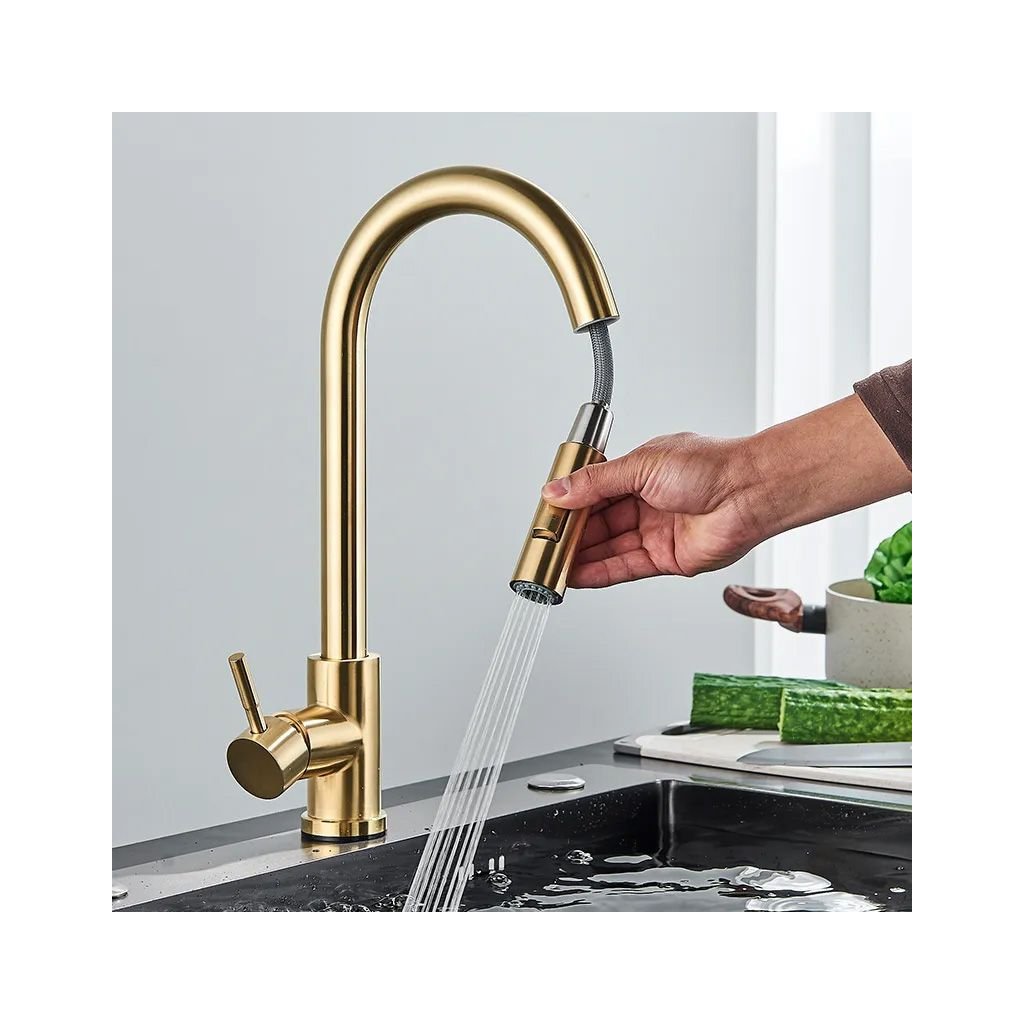 Dřezová baterie REA FRESH s výsuvnou sprškou zlatá