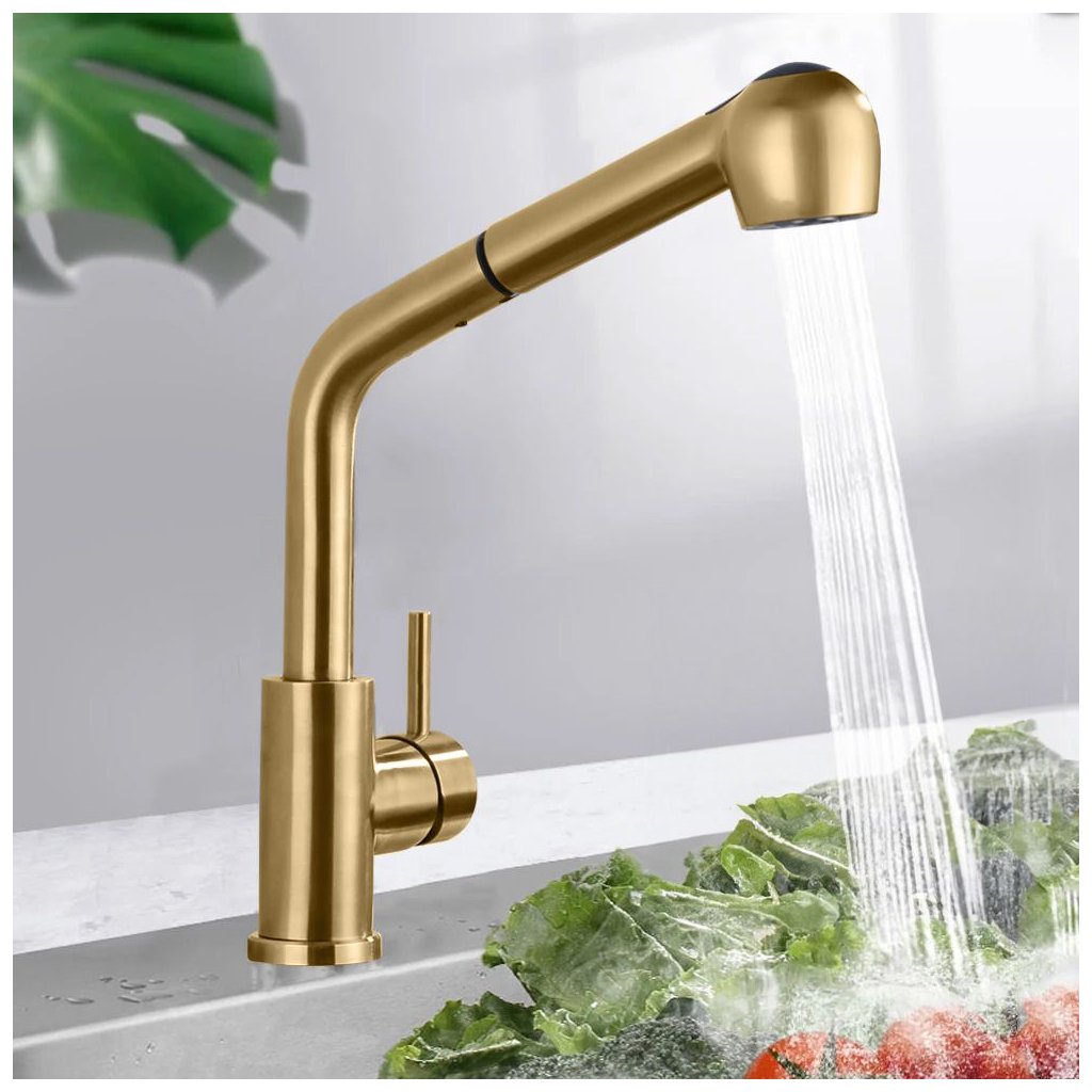 Dřezová baterie REA TROY s výsuvnou sprškou zlatá kartáčovaná
