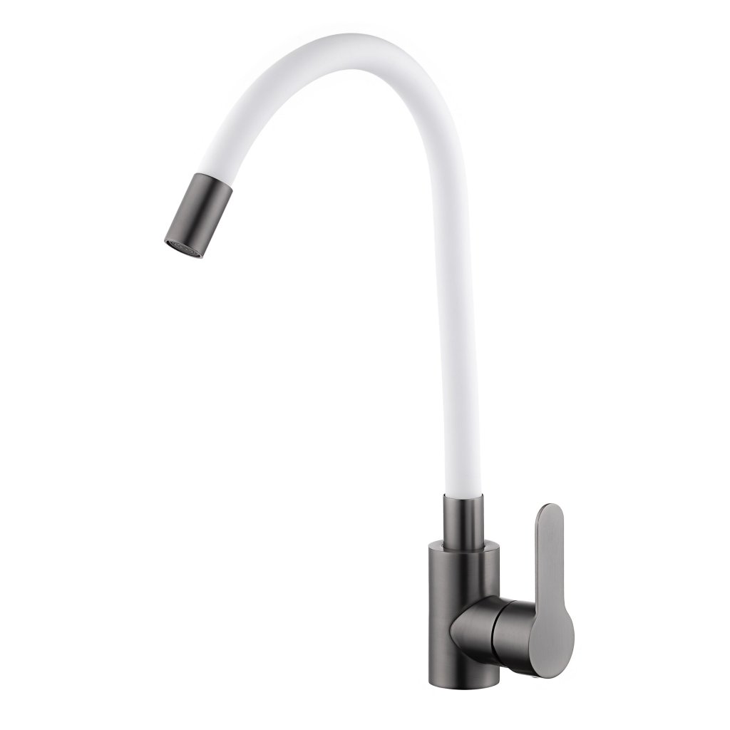 Vyrobena z kvalitní nerezové oceli 304 s povrchovou úpravou Grafit pro dlouhou životnost a odolnost vůči korozi. Bílé flexibilní výtokové raménko odolné proti poškrábání si zachovává původní vzhled i při intenzivním používání.