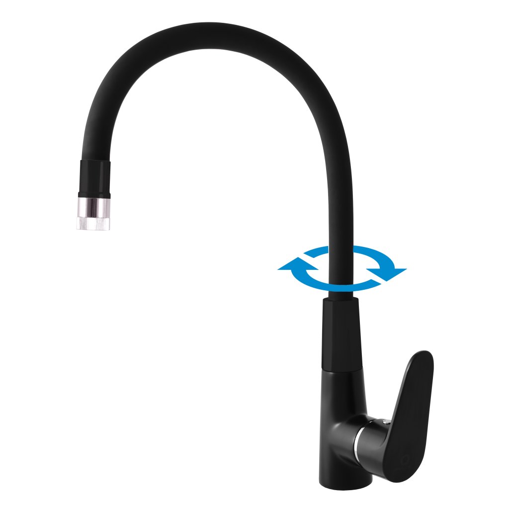 Vodovodní baterie dřezová stojánková s flexibilním otočným ramínkem s dvoupolohovým perlátorem (funkce proud/sprcha).