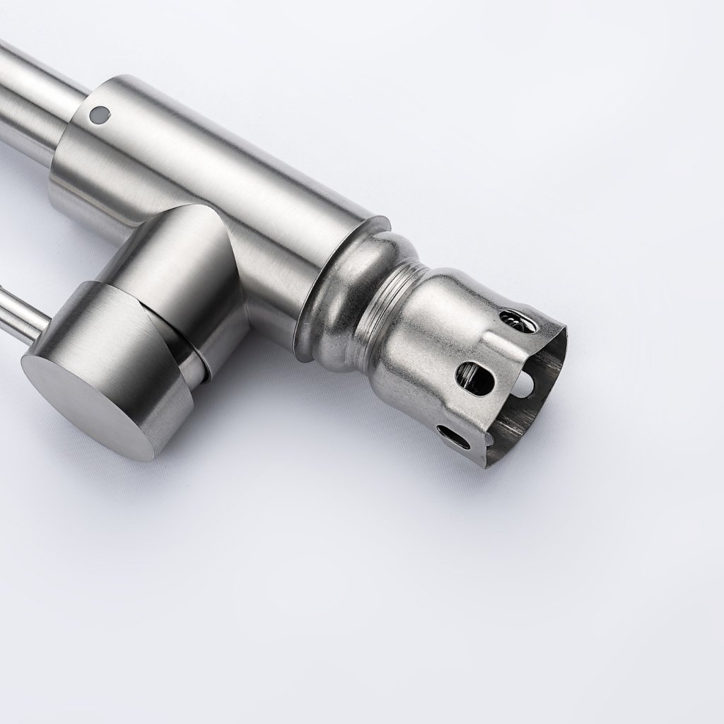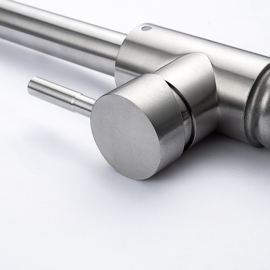 Kuchyňská baterie s nadčasovým designem a vysokou funkčností představuje ideální volbu pro každého, kdo hledá spolehlivé a zároveň stylové řešení. Tělo baterie je vyrobeno z kvalitní nerezové oceli, která zajišťuje odolnost a dlouhou životnost.