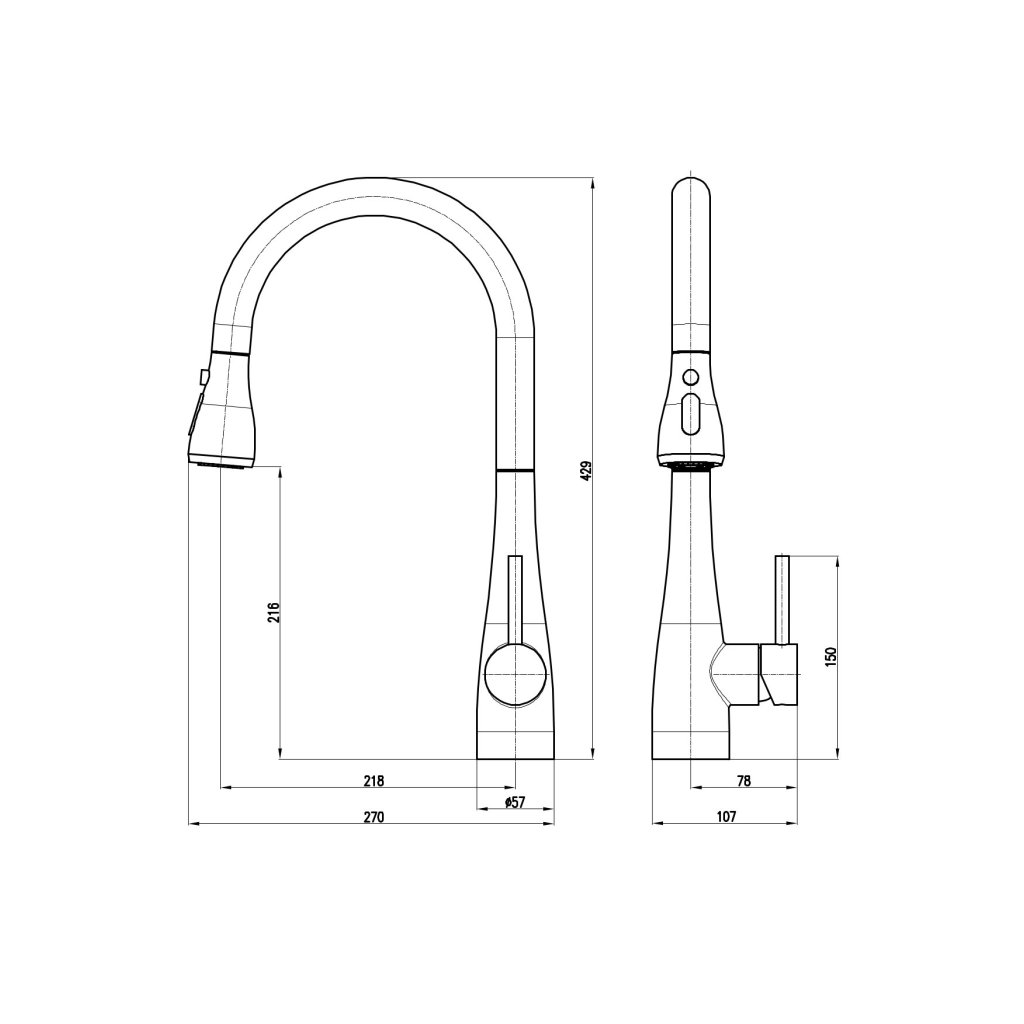 Dřezová baterie s vytahovací sprchou SEINA - SE910.xIN, Nerez