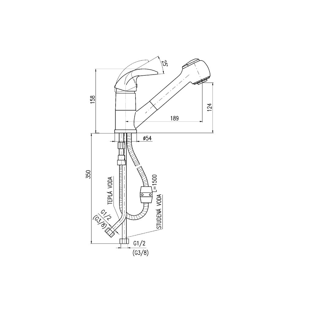 Vodovodní baterie dřezová stojánková s vytahovací sprchou.