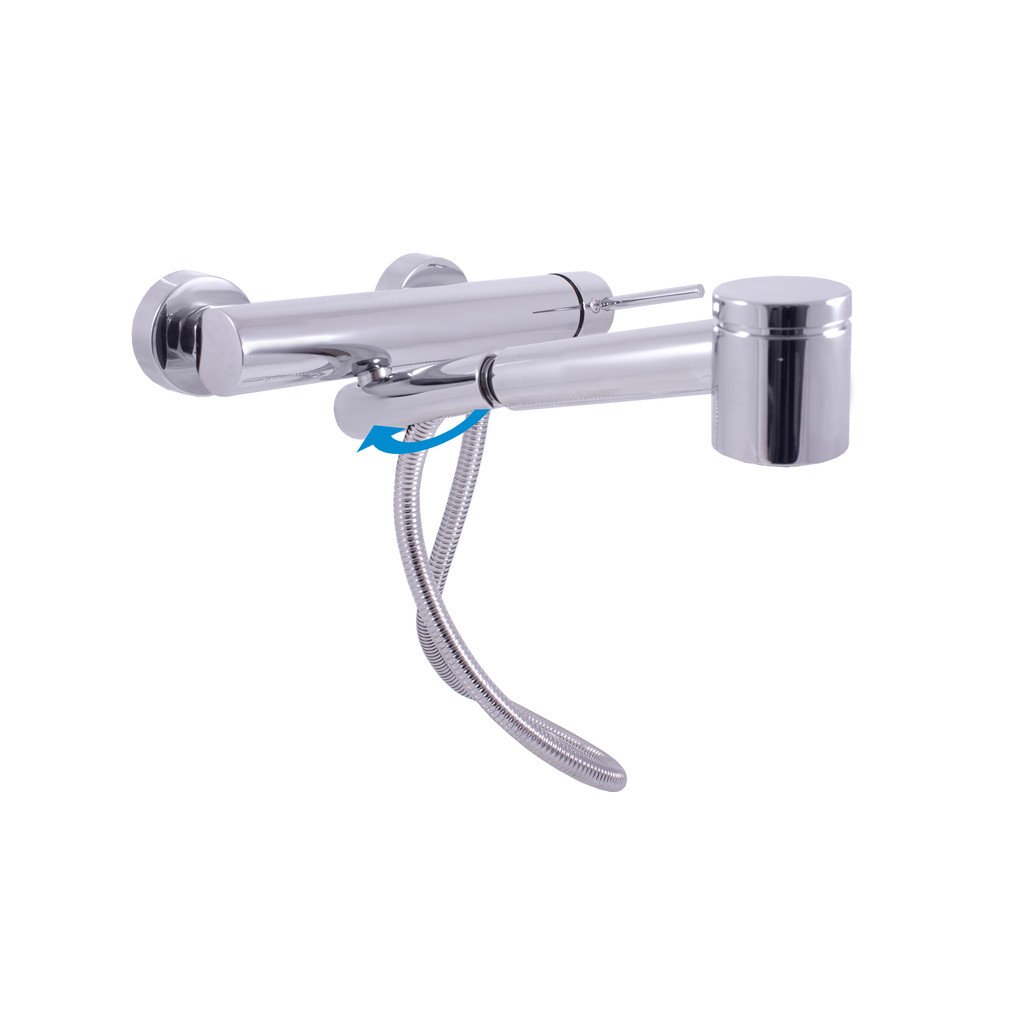 Vodovodní baterie dřezová nástěnná s vytahovací sprchou.