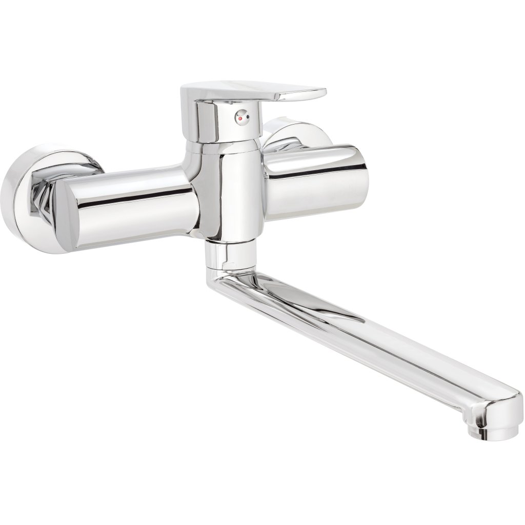 Nástěnná dřezová baterie se vyznačuje solidním zpracováním a nadčasovou chromovou úpravou. Mosazné tělo, keramická kartuše a otočný výtok z nerezové oceli zajišťují odolnost a spolehlivost produktu. Baterie je vybavena perlátorem, který provzdušňuje proud vody a snižuje tak její spotřebu. Lesklý povrch dodá punc elegance jak klasickým, tak i moderním kuchyním.Baterie je vybavena perlátorem, který proud provzdušňuje