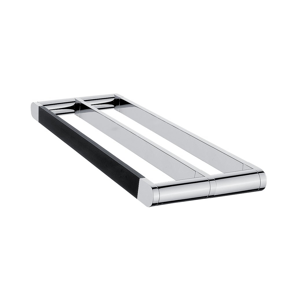 Držák na ručníky dvojitý, 45 cm je skvělým doplňkem do koupelny. Série NAVA zapadne s lehkostí do každé decentní koupelny. Matná černá a chrom vytváří unikátní kombinaci, která je přizpůsobivá a dovede prostor vaší koupelny k dokonalosti. Ke slovu nyní přichází barvy, kontrasty matu a různé kombinování. Začněte svůj den v koupelně jejíž dominantou jsou stylové doplňky ze série NAVA.Držák na ručníky dvojitý, 45 cm bude koupelně slušet mnohem více, pokud zvolíte i další doplňky série Nava z nabídky koupelnových a WC doplňků NIMCO.