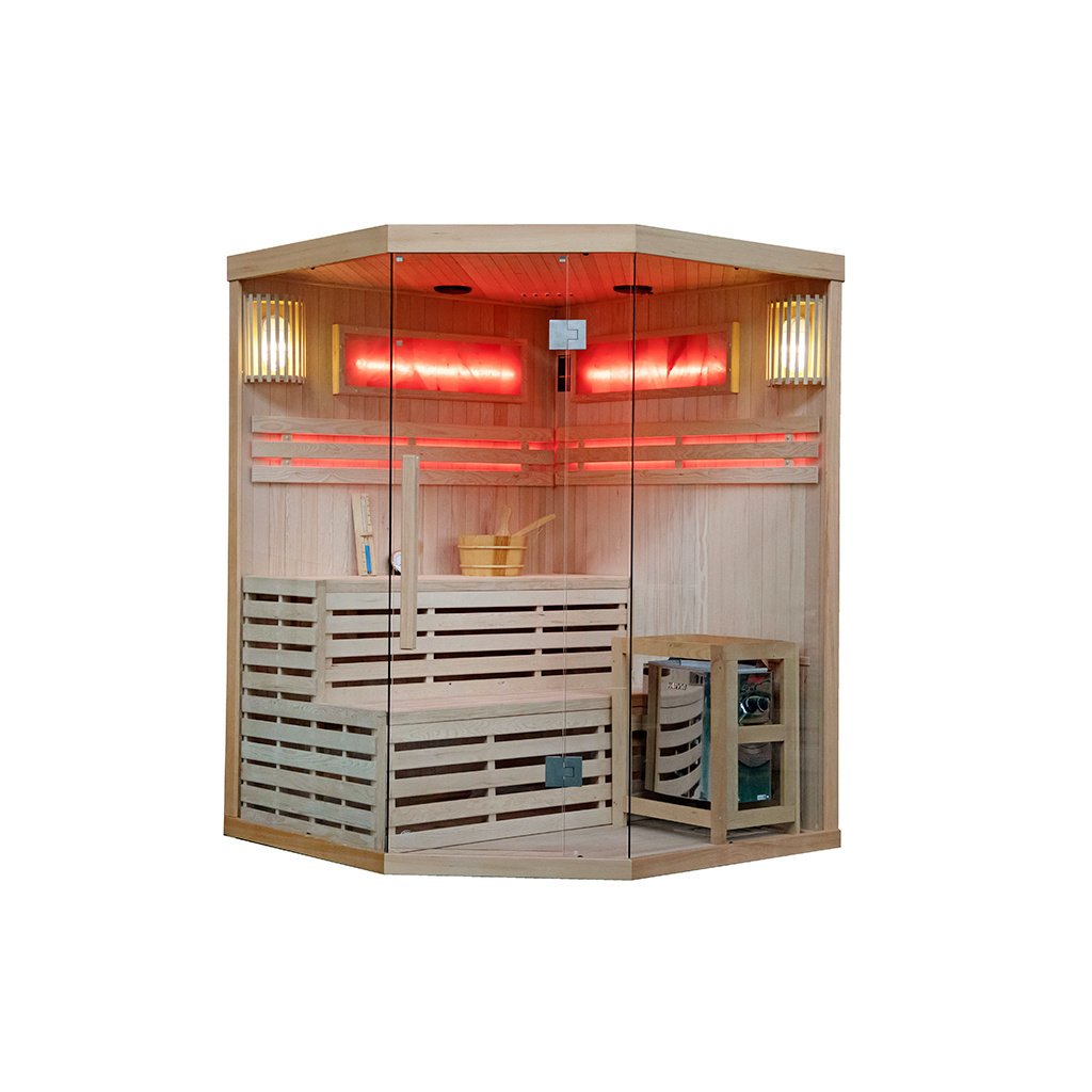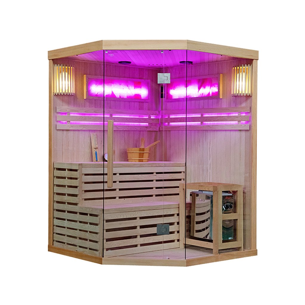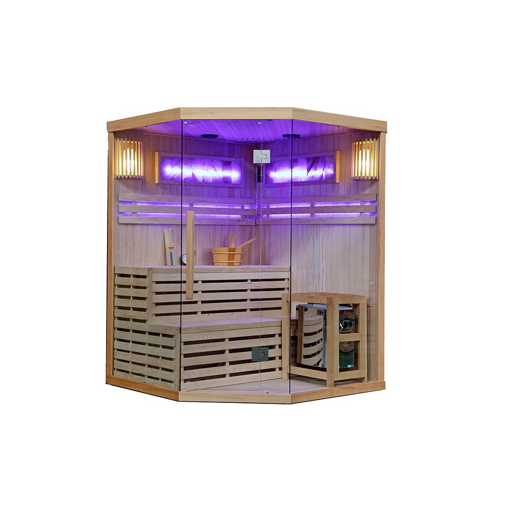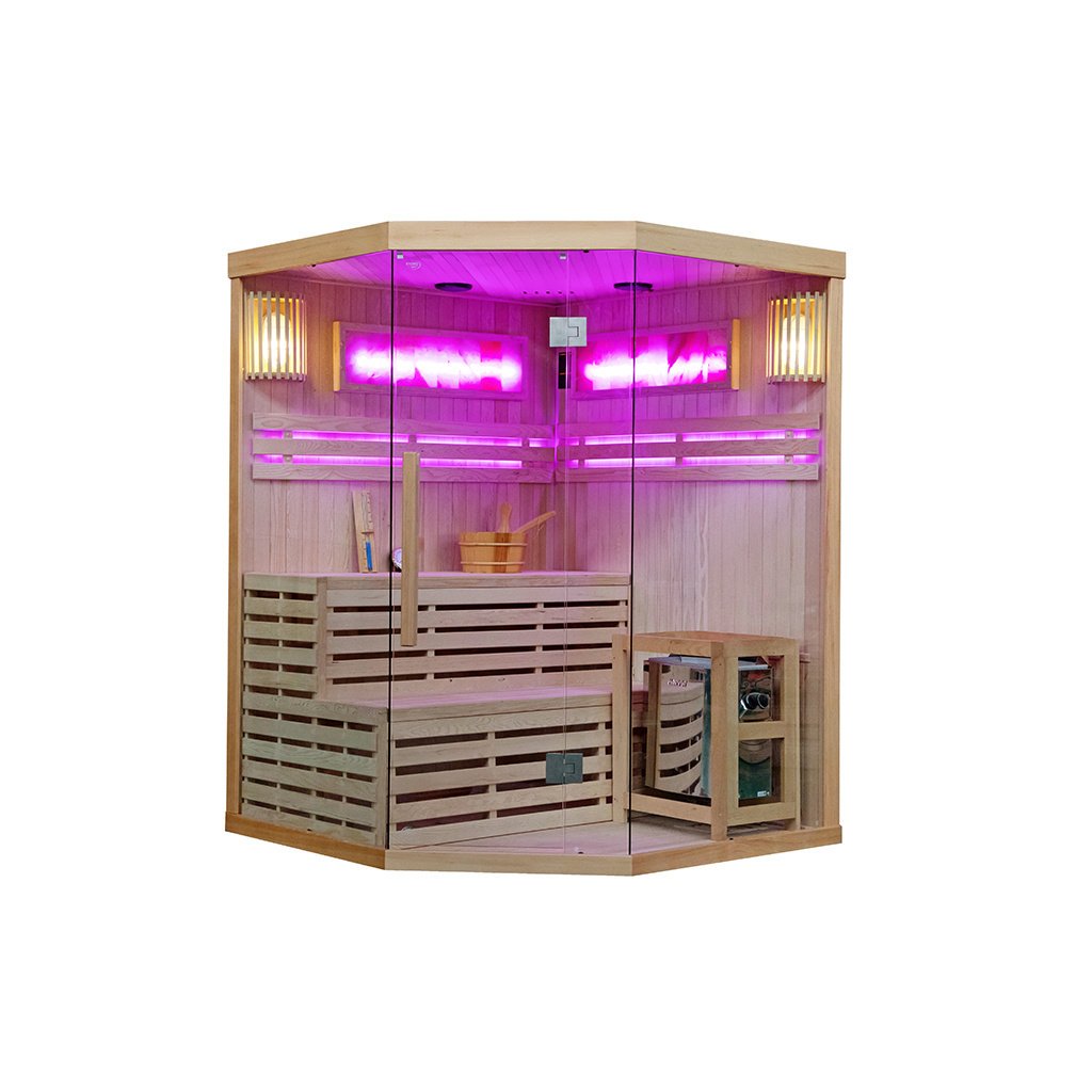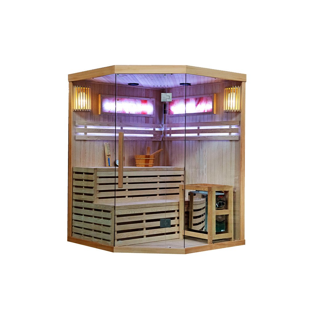 Finská sauna - suchá sauna se zahřívá na vysoké teploty 60 - 110°C s velmi nízkou vlhkostí vzduchu (5-15%). Získat tak vysokou teplotu je možné díky speciálních saunových kamen, které zahřívají kameny. V těchto kamenech se akumuluje potřebné teplo a postupně se tak zahřívá celá sauna na vysokou teplotu. Pravidelné využívání tradiční finské sauny navozuje psychickou pohodu, dodává pocit vnitřního tepla, uvolňuje usazené toxiny a podporuje fyzické i psychické zdraví. Suchou saunu se doporučuje využívat 2x týdně.