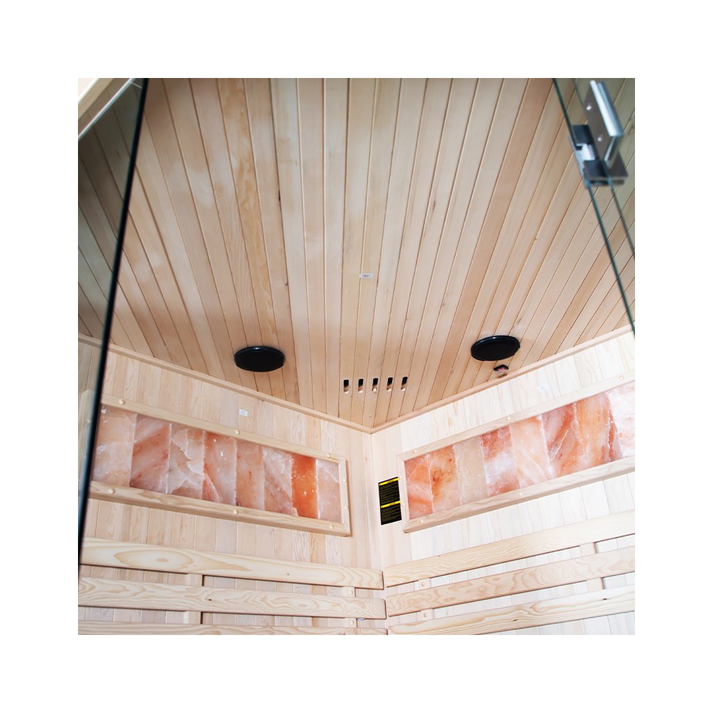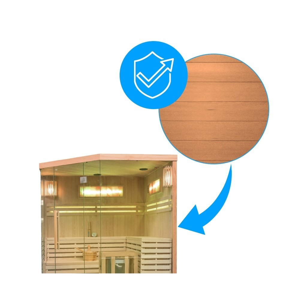 - Sauna je vyrobena z Kanadského jedlovce - Hemlock. Jedná se o nejideálnější materiál pro výrobu saun. Dřevo Hemlock neobsahuje pryskyřici a nevypouští žádné vůně.
