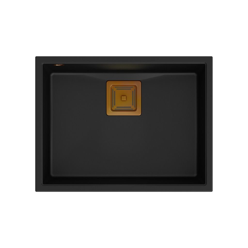 Granitový dřez REA DAVID 50 černý, odtokový komplet měď