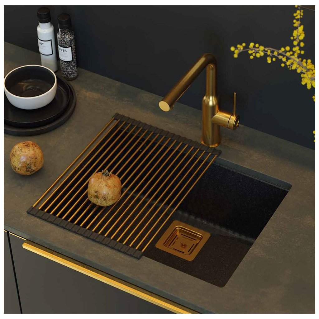 Granitový dřez REA DAVID 50 černý, odtokový komplet zlatý