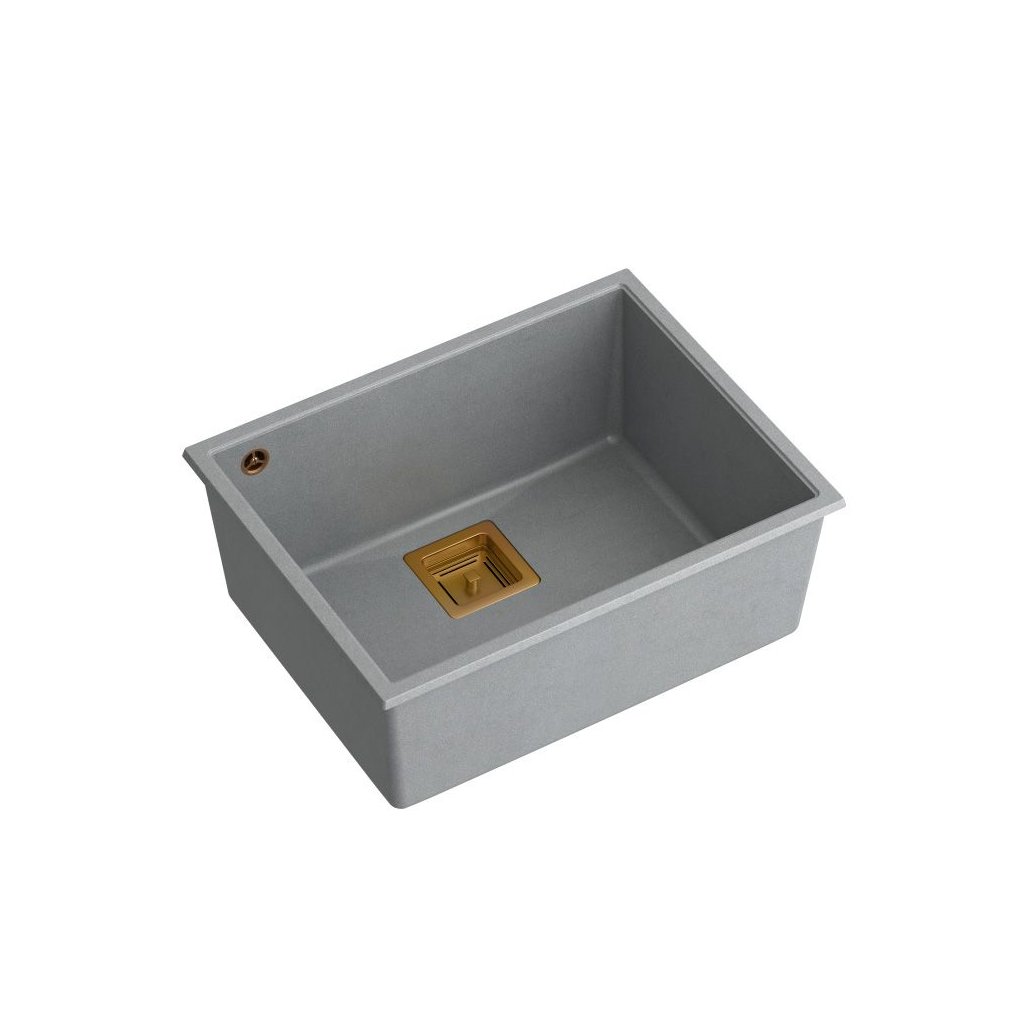 Granitový dřez REA DAVID 50 šedý metalic, odtokový komplet zlatý