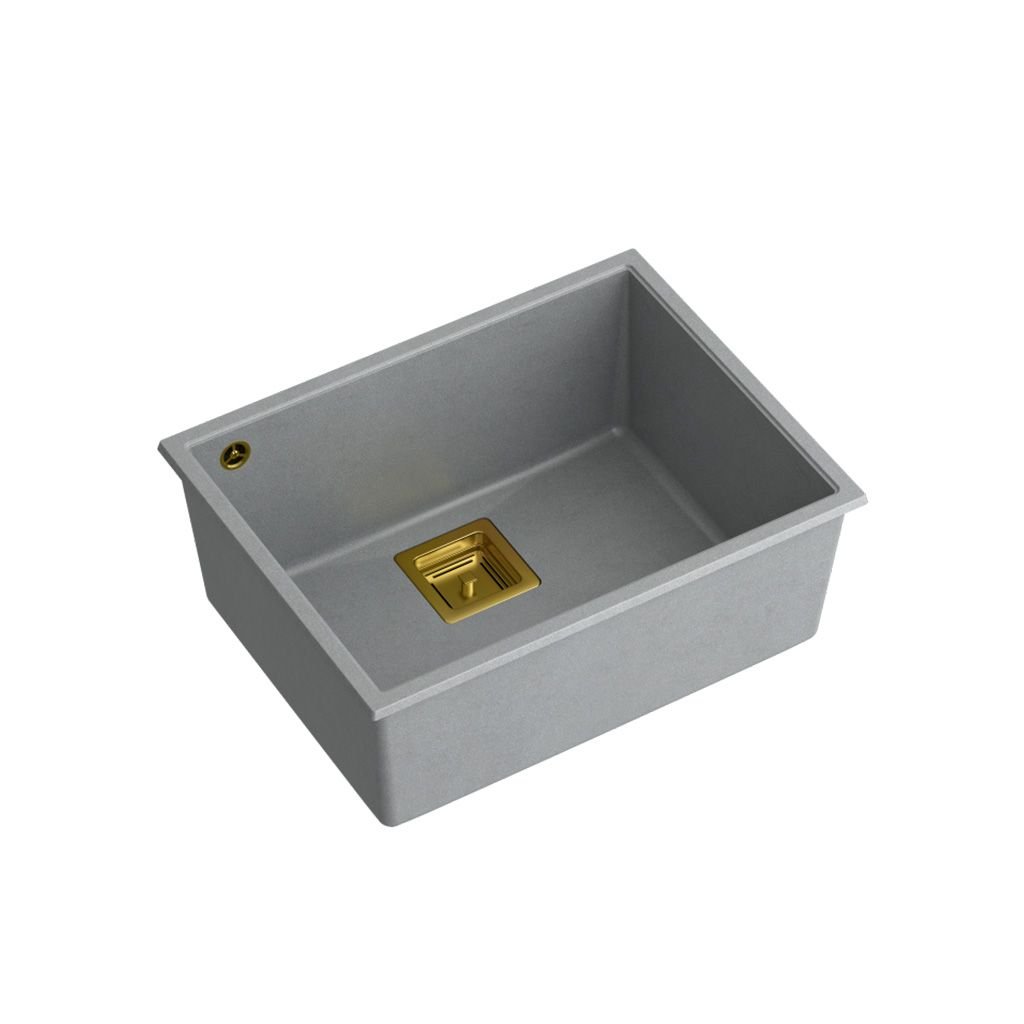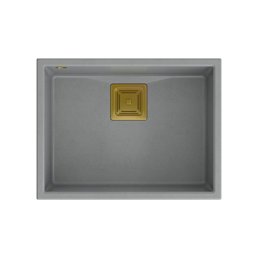 Granitový dřez REA DAVID 50 šedý metalic, odtokový komplet zlatý