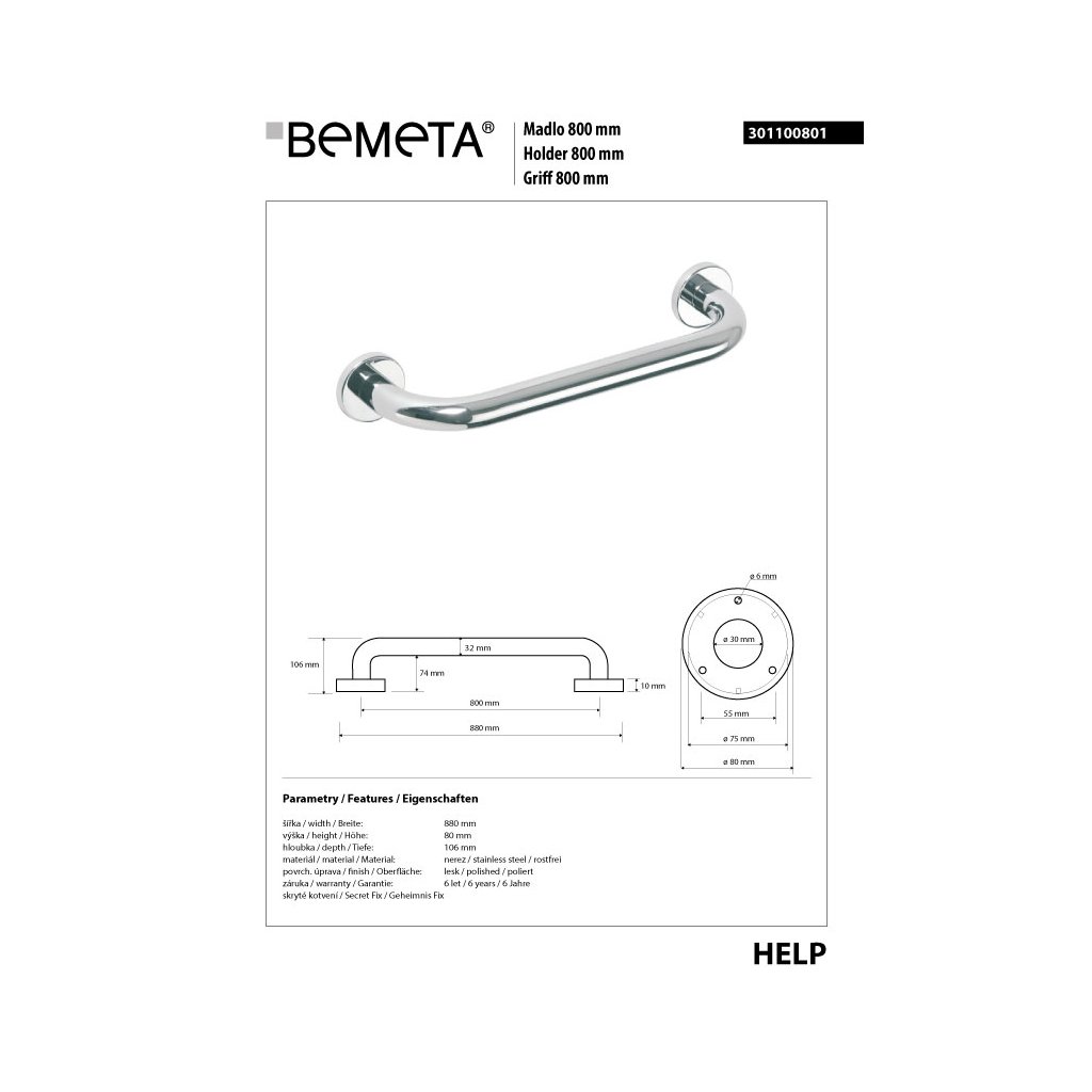 HELP: Madlo 800 mm, nerez, lesk, s krytkou - 301100801