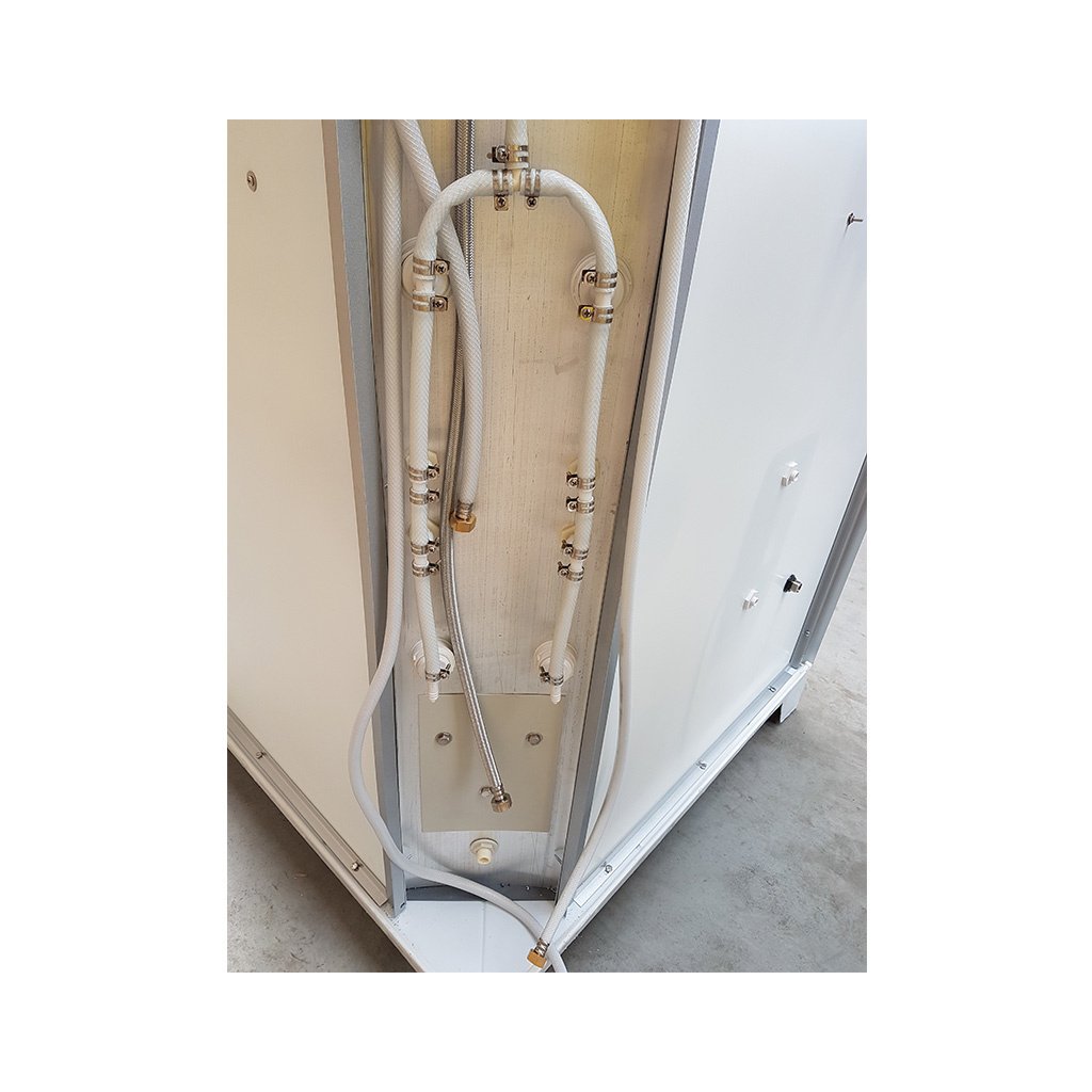 Hydromasážní box HYD-R71W dodáváme v rozměrech 80x80 v provedení bez sauny, s 8 masážními tryskami, multifunkční sprchovou hlavicí, masáží nohou, sklopnou stoličkou a policí.