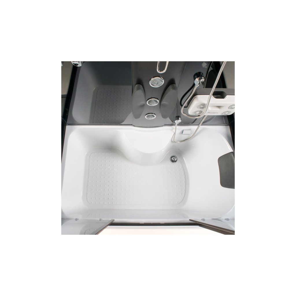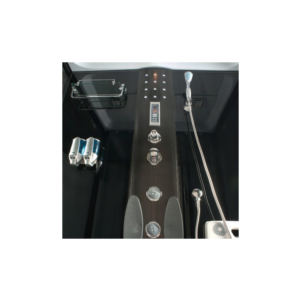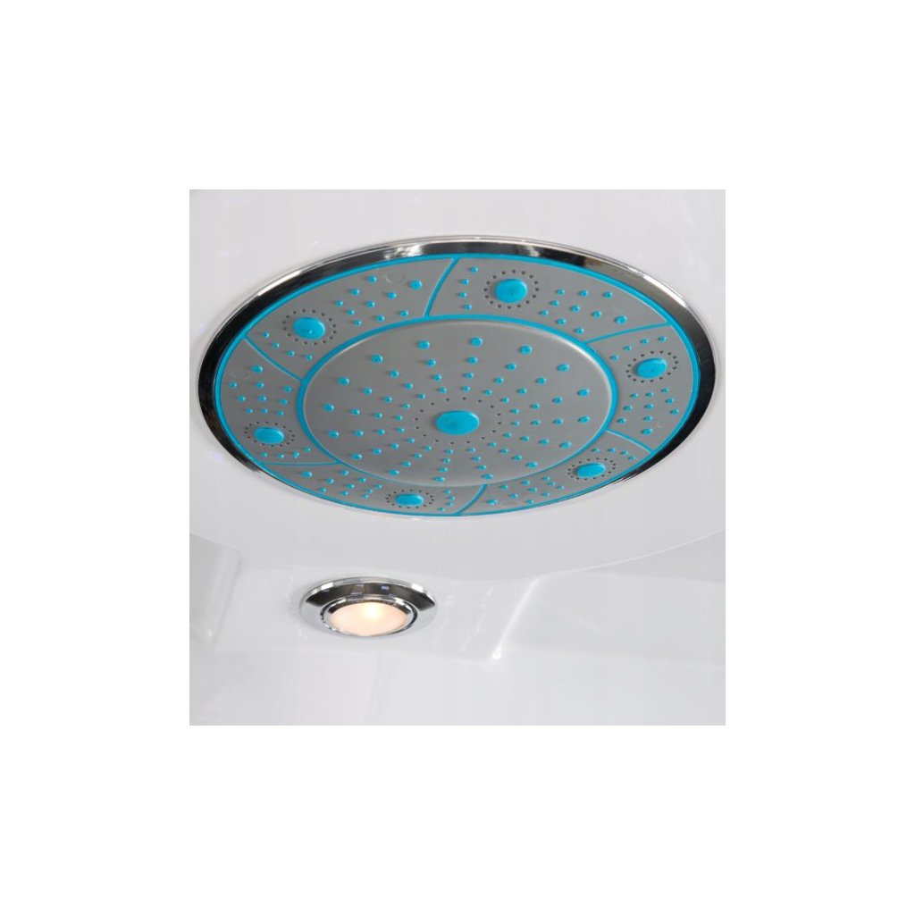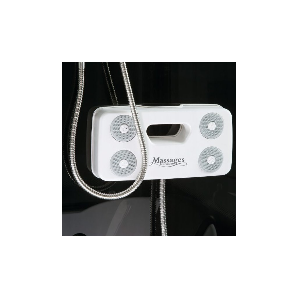 - Sprchový box je vybaven ovládacím panelem, rádiem, ventilátorem, masážním přístrojem na nohy, LED osvětlením, skleněnou policí se zábranou, dávkovačem mýdla/šamponu.