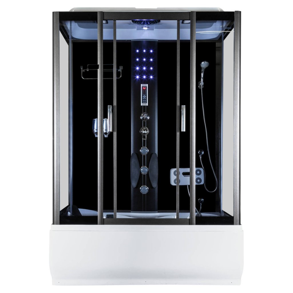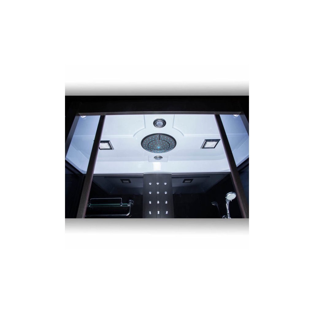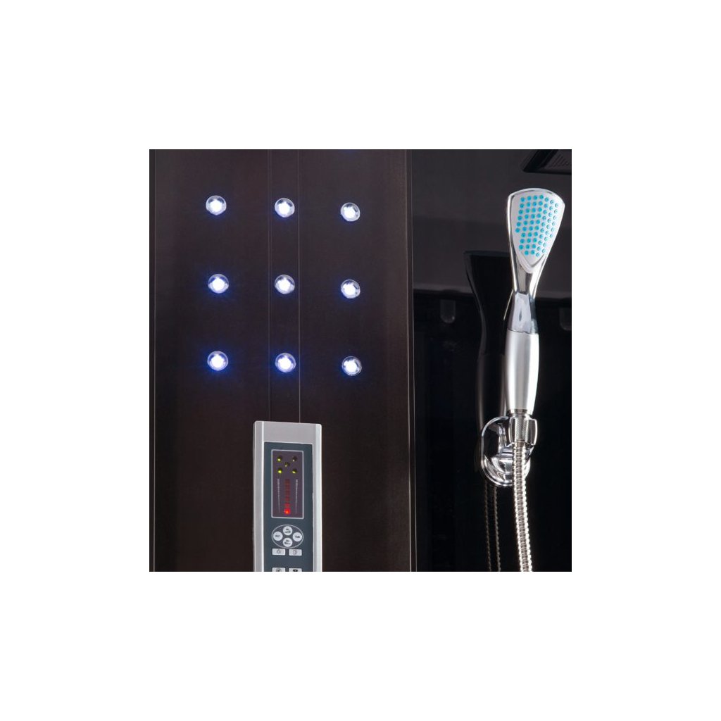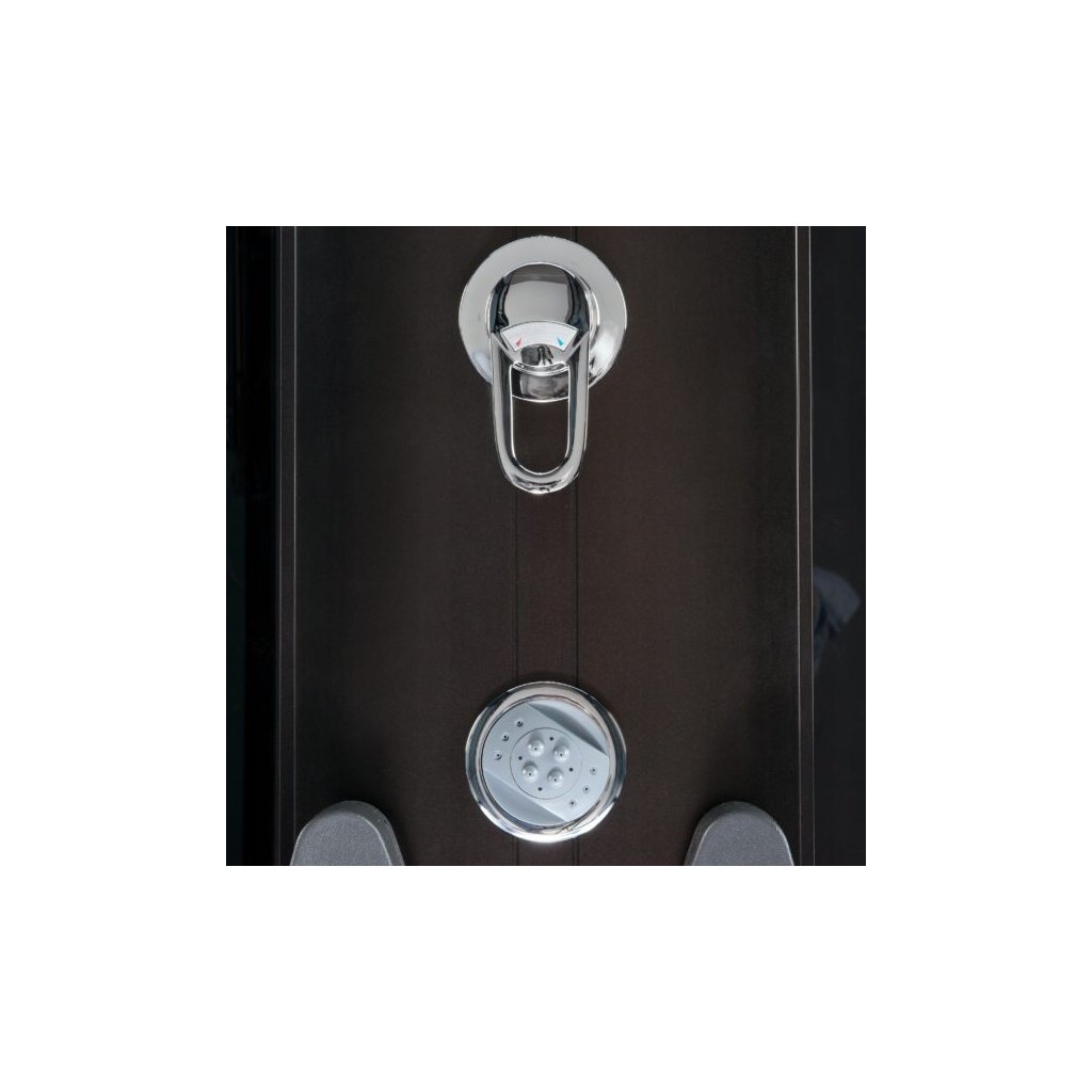 - Sprchový box je vybaven ovládacím panelem, rádiem, ventilátorem, masážním přístrojem na nohy, LED osvětlením, skleněnou policí se zábranou, dávkovačem mýdla/šamponu.
