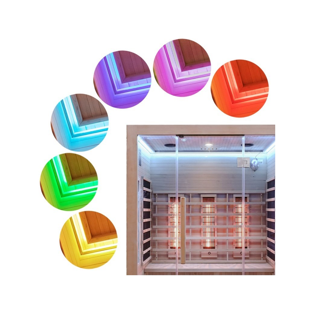 - Ohřev sauny je zajištěn kombinací postranních panelů, zádového panelu a panelu umístěného pod lavicí