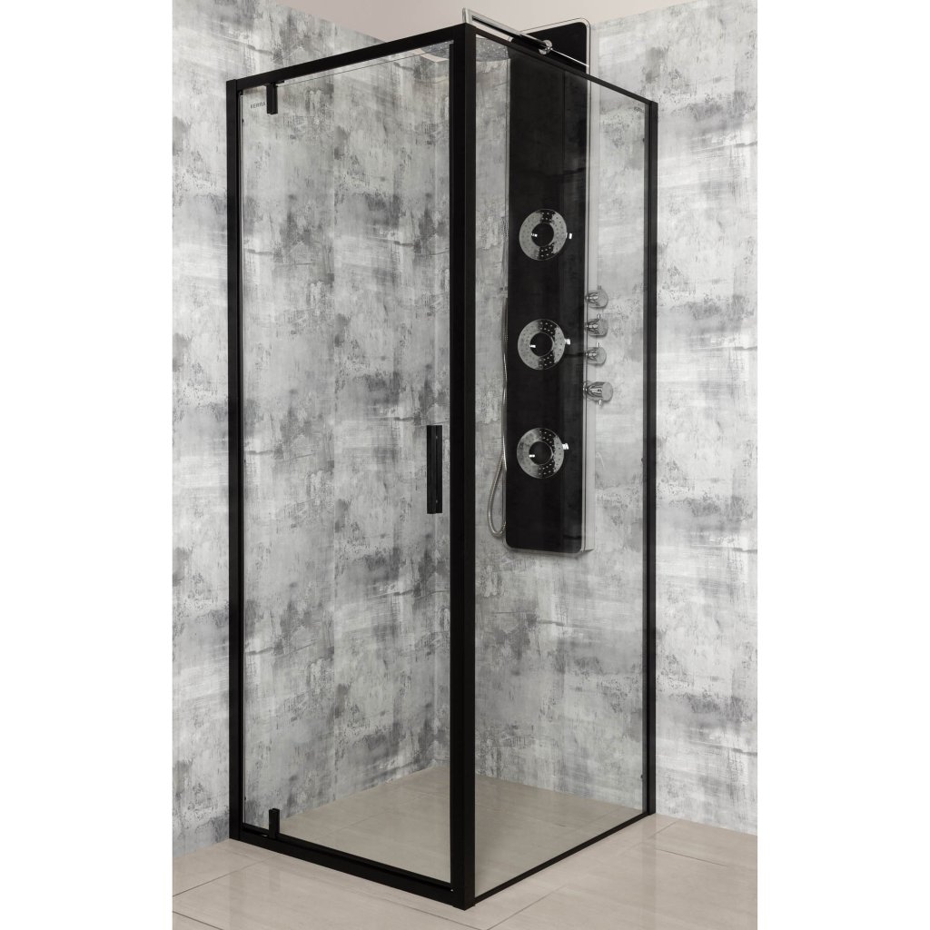 Jednokřídlé otevíravé sprchové dveře Solid DSPA BL 90, černá/transparent - bez vaničky