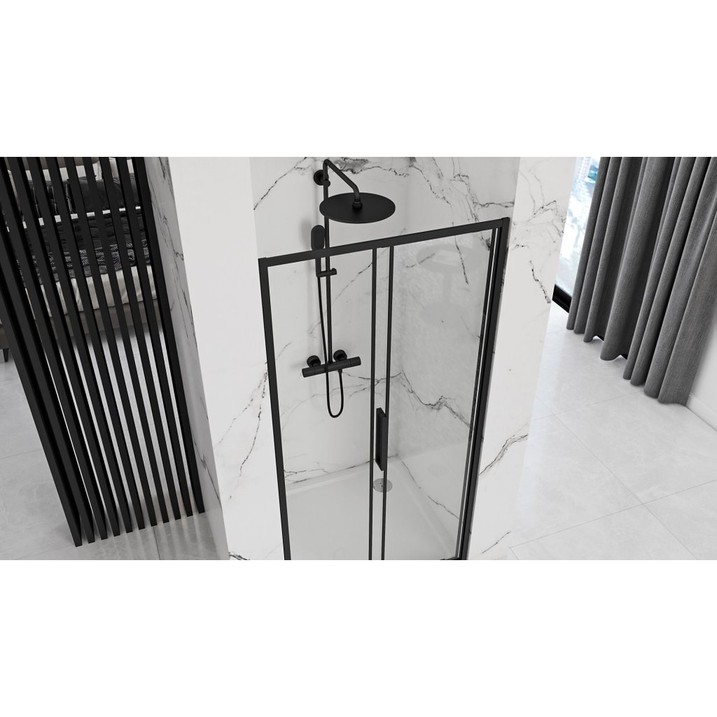 Jednokřídlé posuvné sprchové dveře REA RAPID SLIDE 130 cm pro instalaci do niky, černé/transparent - bez vaničky