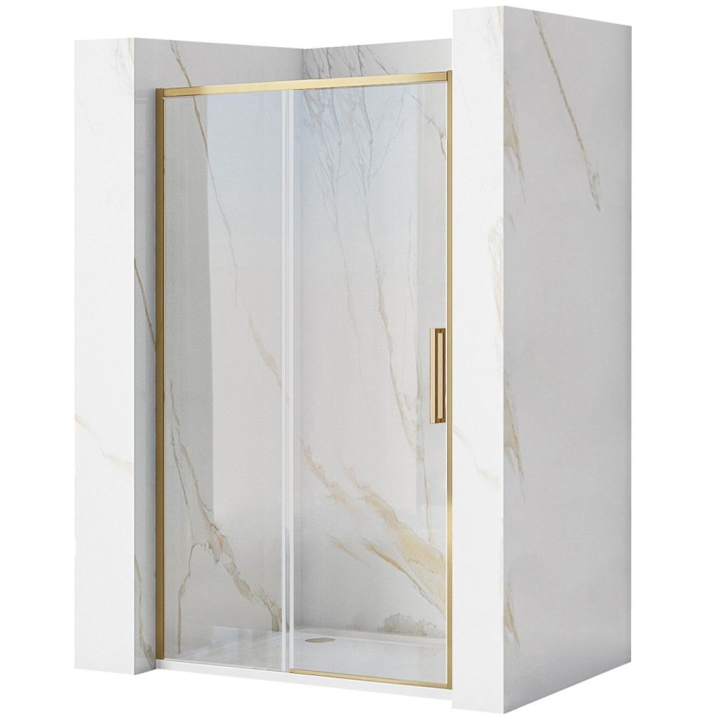 Jednokřídlé posuvné sprchové dveře REA RAPID SLIDE 140 cm pro instalaci do niky, zlaté kartáčované/transparent - bez vaničky
