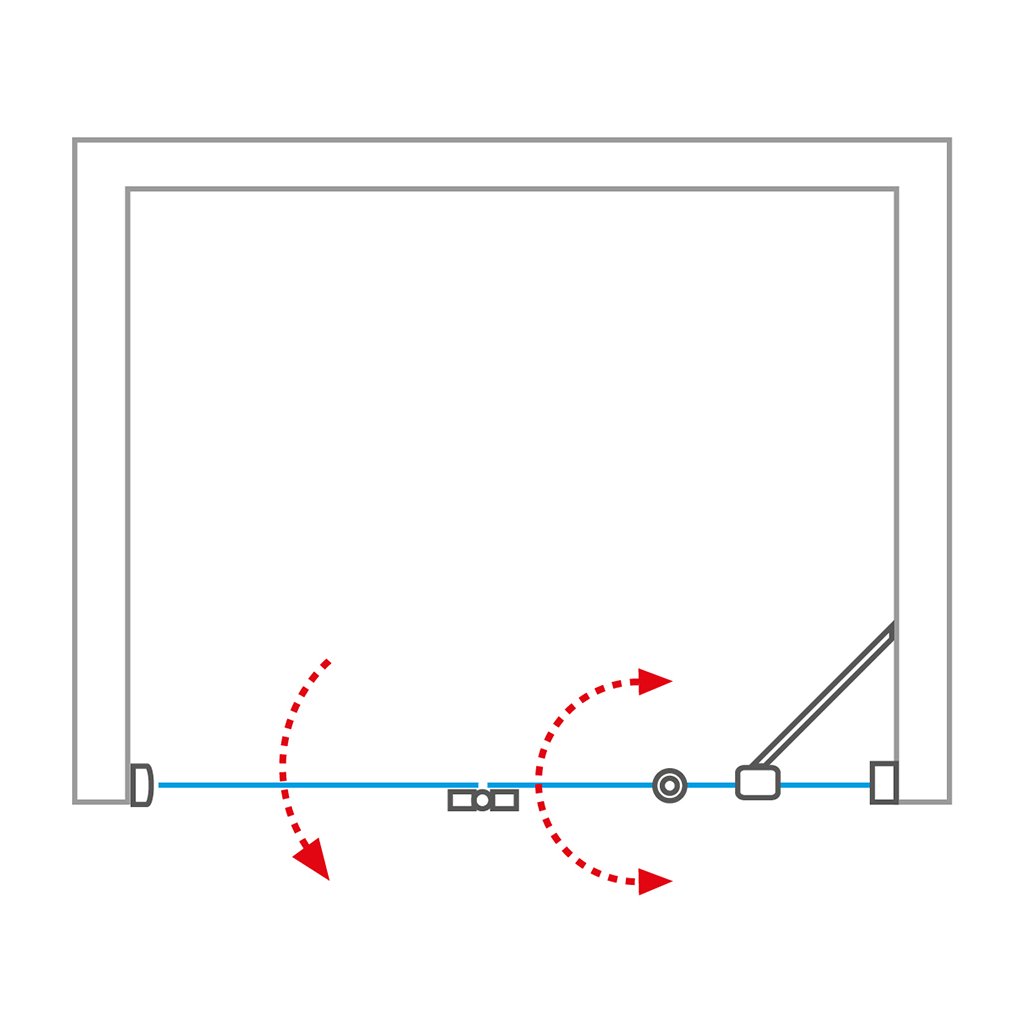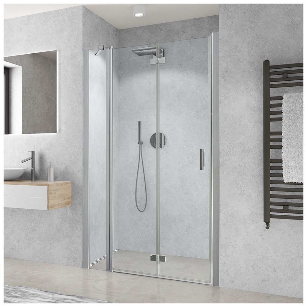 Tyto dveře mají profily z ušlechtilého hliníku v provedení Brillant. Výplně bezpečnostních skel nabízíme v nadčasovém provedení Transparent (čiré sklo). Produkt disponuje skládacími dveřmi, díky kterým si zajistíte ještě širší a pohodlnější vstup do sprchy. Skládací dveře je možné složit zcela ke zdi díky otočným stěnovým profilům.