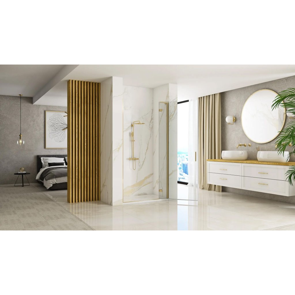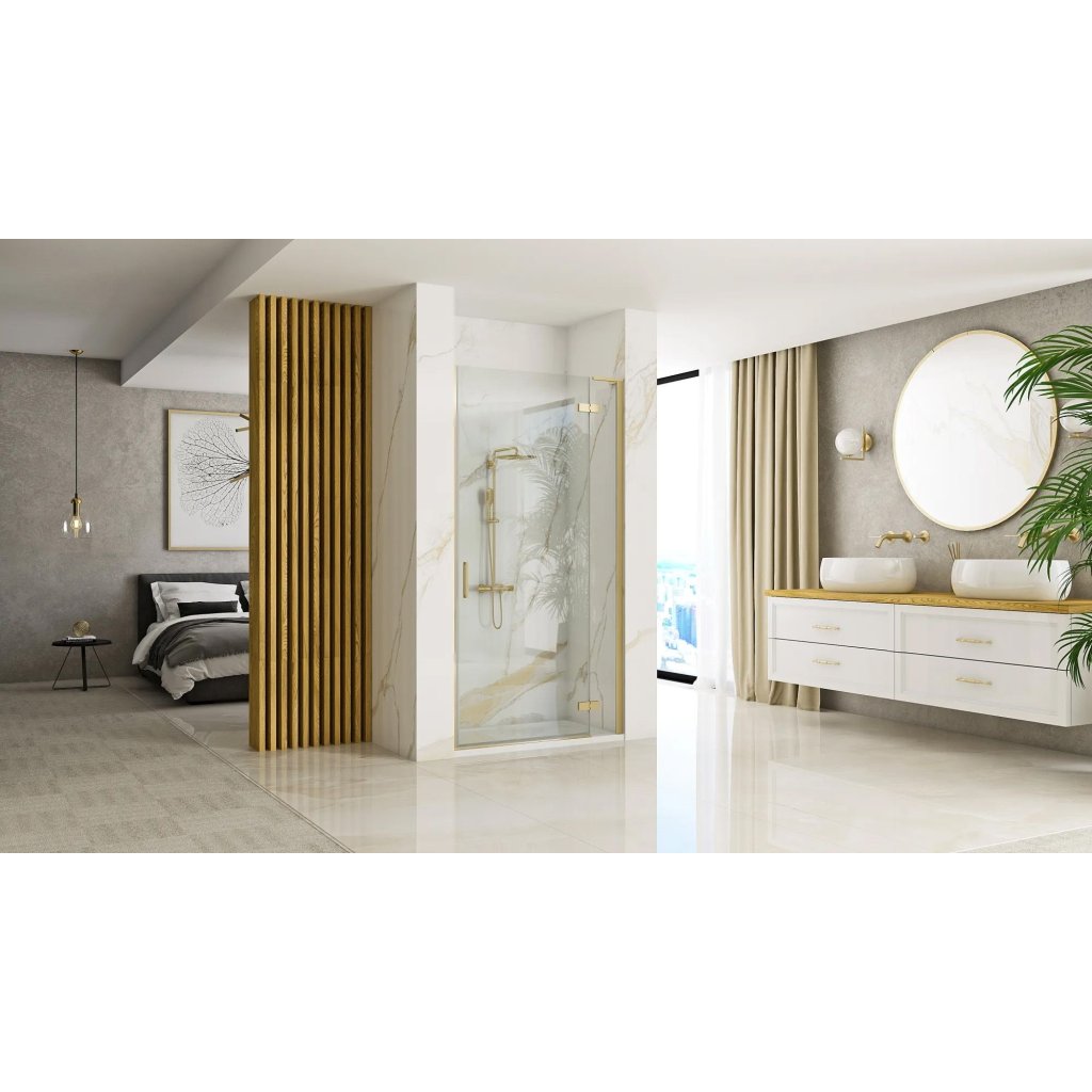 Jednokřídlé sprchové dveře REA HUGO 90 cm + stěnový profil s magnetickým těsněním, zlaté kartáčované - bez vaničky