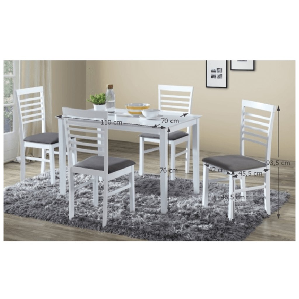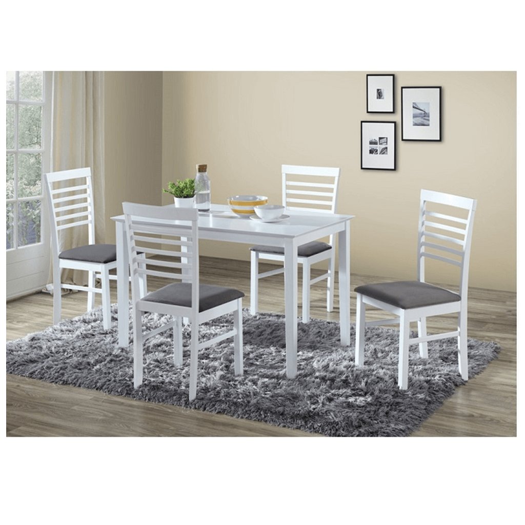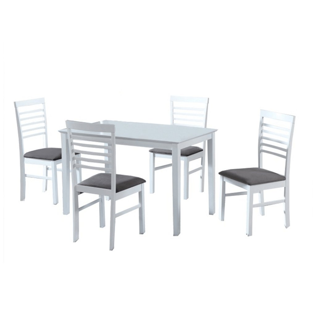 Jídelní set, MDF bílá / látka šedá, BRISBO 1 + 4