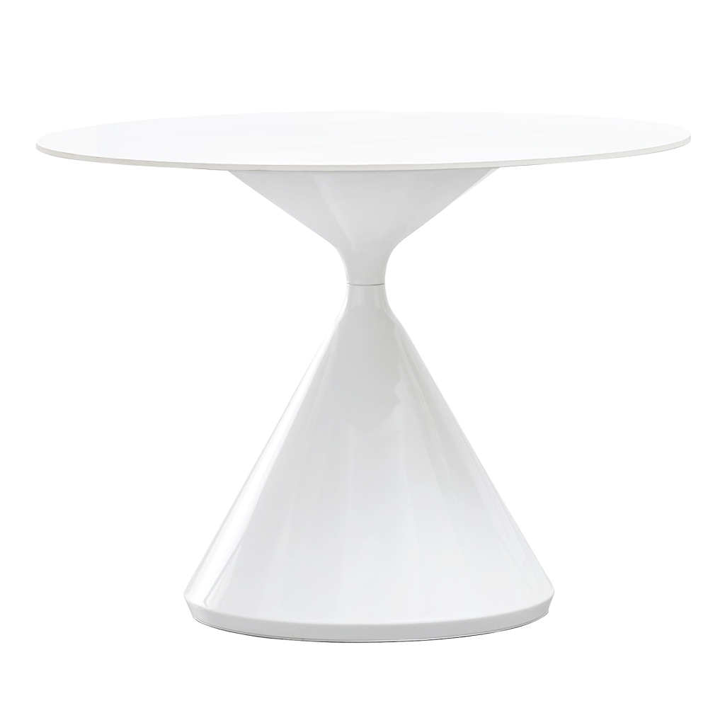 Kulatý tvar stolu je nejen vizuálně atraktivní, ale také praktický pro společné chvíle s rodinou či přáteli, neboť podporuje přirozenou konverzaci a vytváří útulnou atmosféru. Stabilní kovová podstava zajišťuje pevnou oporu a zároveň doplňuje minimalistický vzhled, který se snadno kombinuje s moderním i klasickým nábytkem.
