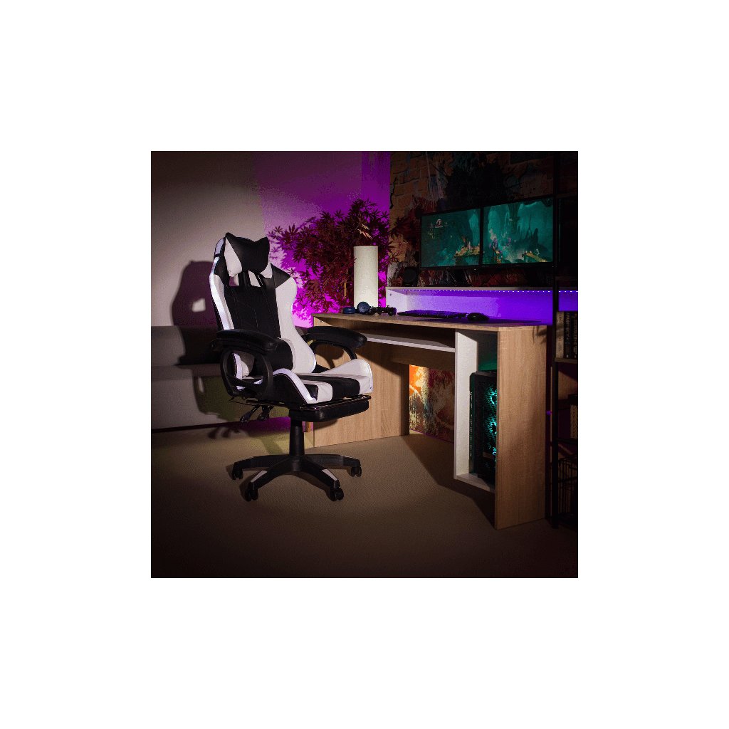 Kancelářské/herní křeslo s RGB LED podsvícením, černá/bílá, JOVELA