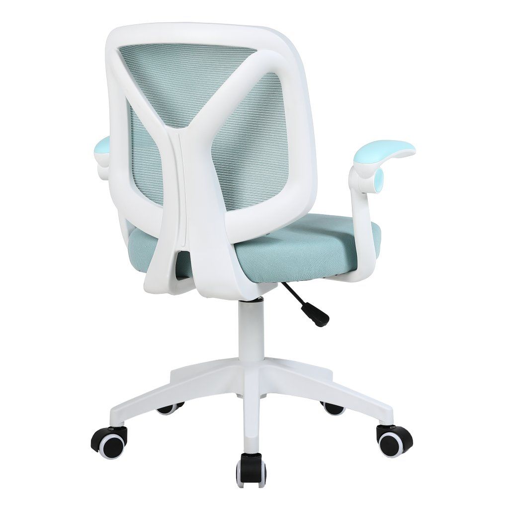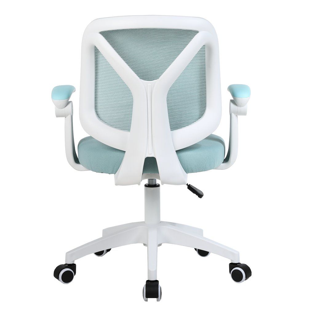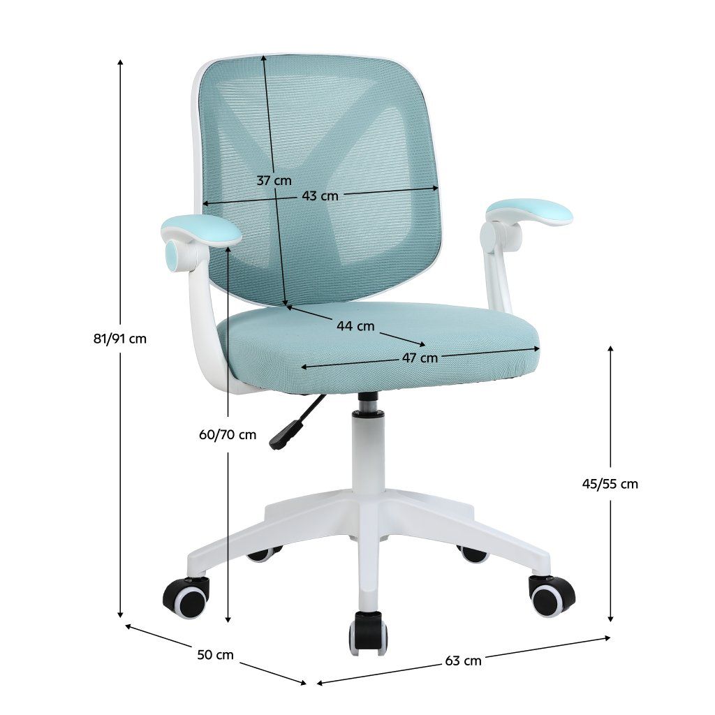 Ergonomie je u tohoto modelu na prvním místě. Židle disponuje praktickými opěrkami na ruce, které lze v případě potřeby sklopit, což usnadňuje zasunutí křesla pod stůl a šetří místo. Otočný mechanismus a nastavitelná výška sedu umožňují individuální přizpůsobení vašim potřebám, zatímco univerzální kolečka zajišťují plynulý pohyb po jakémkoli povrchu.