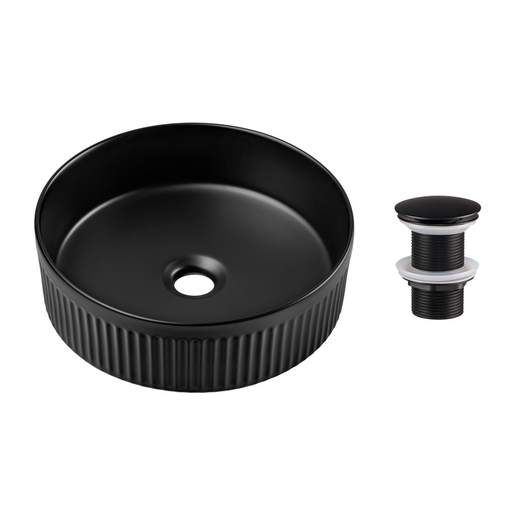 - sestava žebrovaného umyvadla a černé matné výpusti