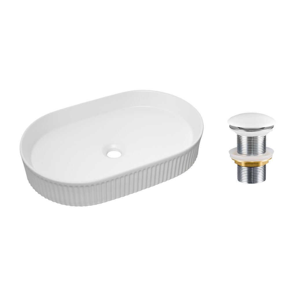 Umyvadlo BEYOND 3 je vyrobeno z vysoce odolné sanitární keramiky, která i přes svou nízkou konstrukční výšku 100 mm vyniká mimořádnou pevností a odolností proti mechanickému poškození. Bílý povrch s vysokým leskem v kombinaci se svislým žebrováním vnější stěny vytváří hru světla a stínu, která z umyvadla činí dominantní designový prvek koupelny. Díky bezpřepadovému provedení a absenci otvoru pro baterii působí oválný tvar velmi lehce a elegantně, což je ideální pro kombinaci s podomítkovou nebo vysokou stojánkovou baterií instalovanou na desku.