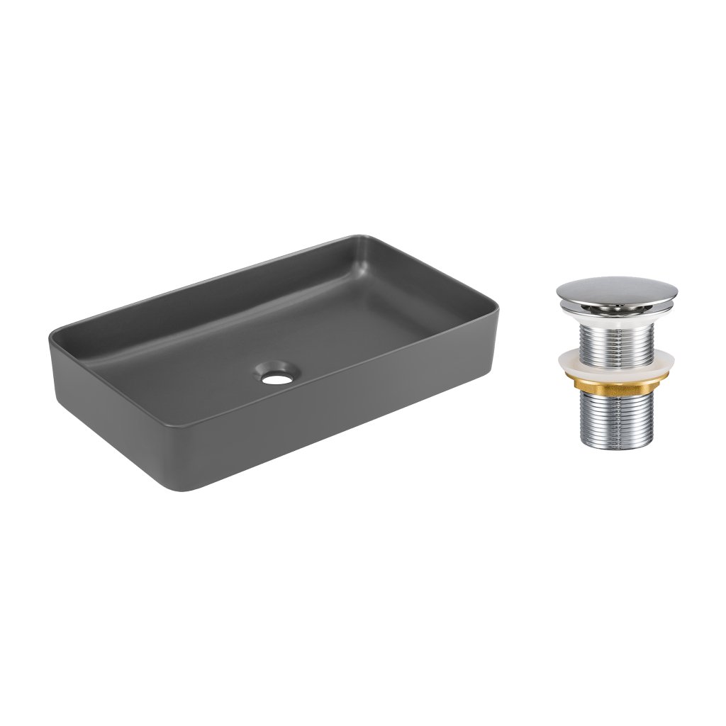 Keramické umyvadlo na desku Beyond 61x34 šedé + výpusť Click-Clack, chrom