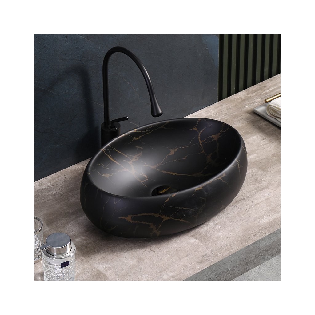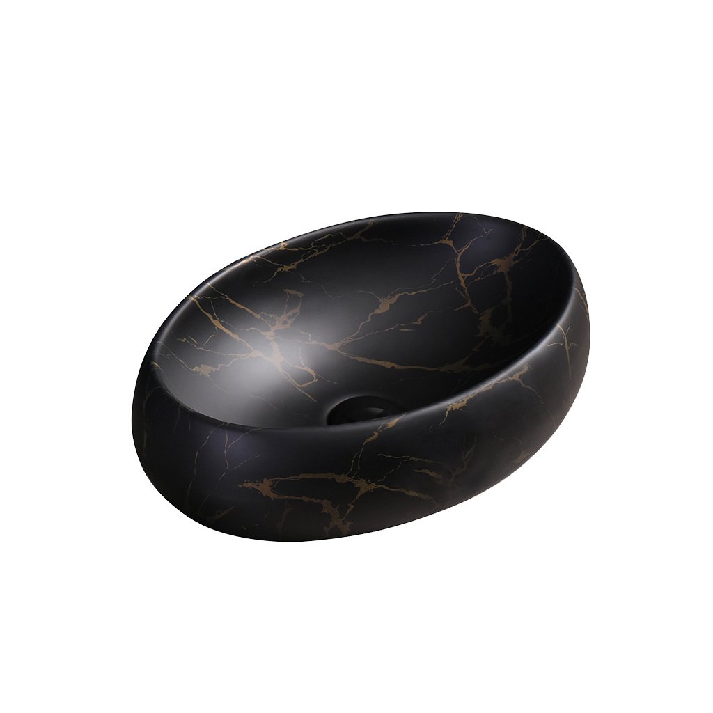 Keramické umyvadlo na desku HYD-CI-MAR3-600 60x40,5 cm, černý mramor