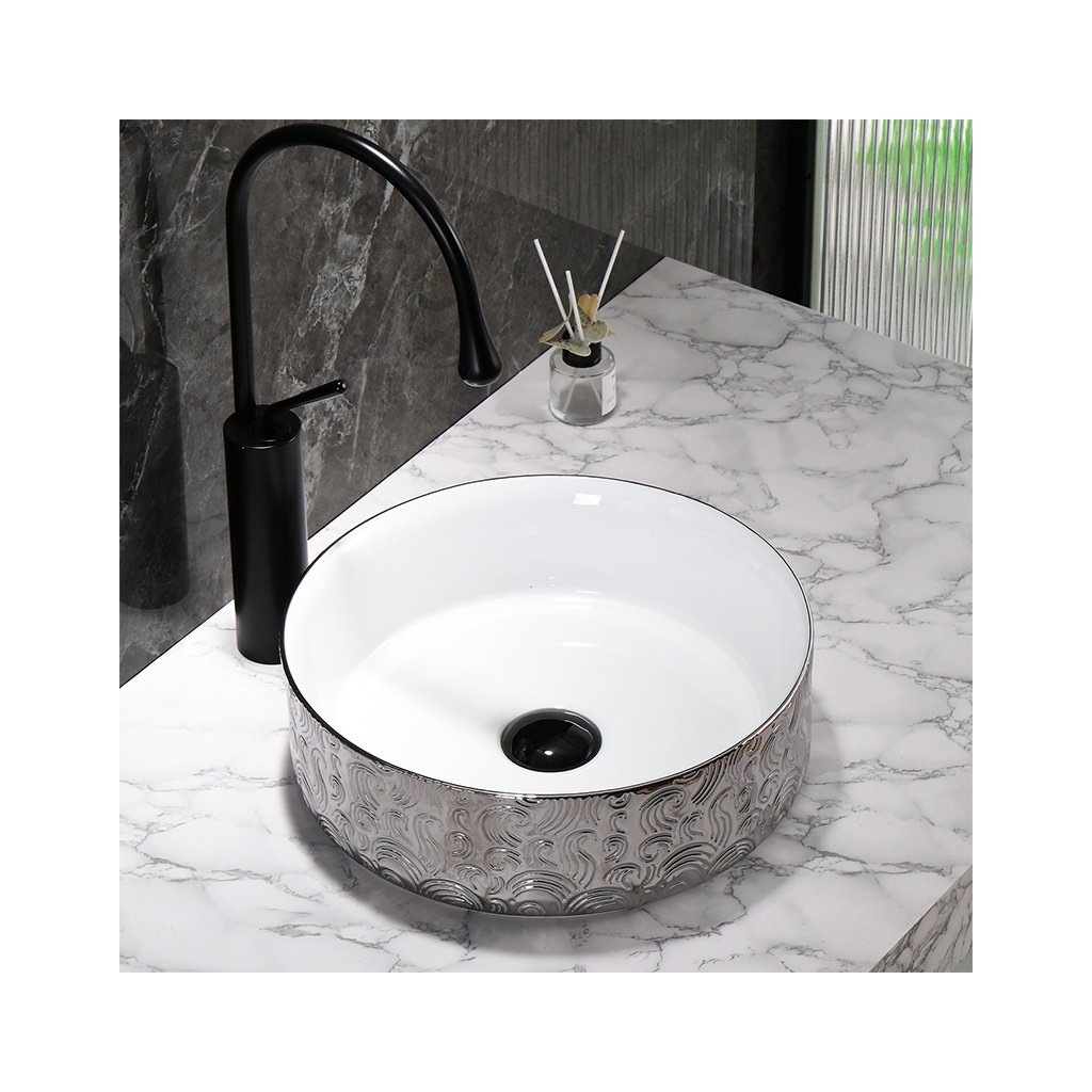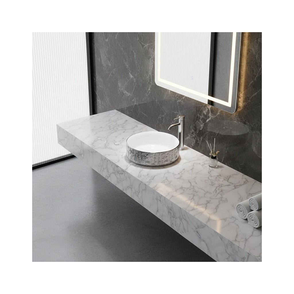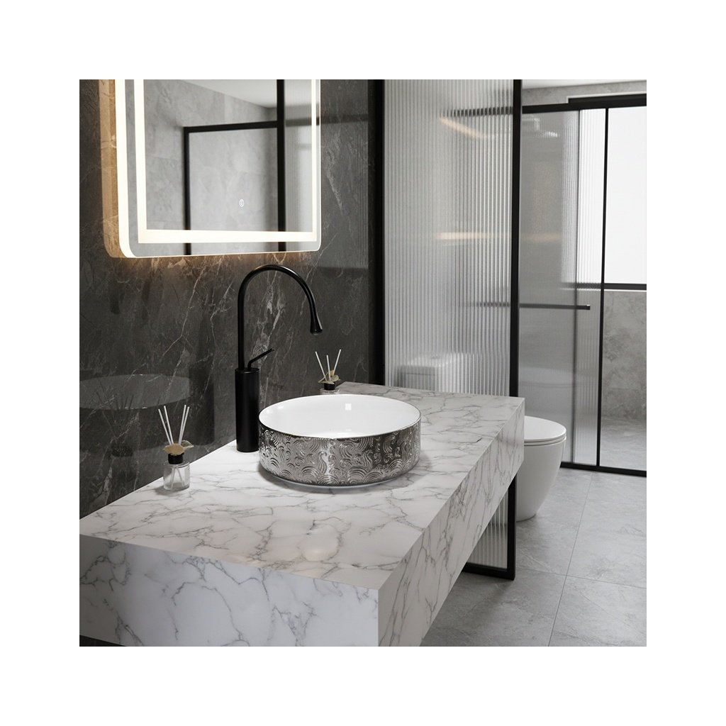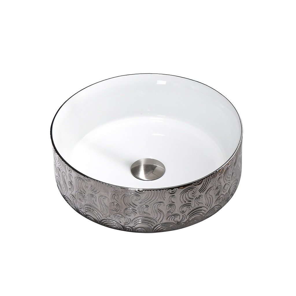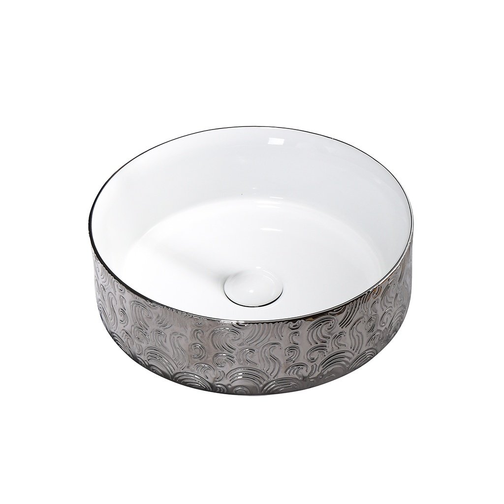 Keramické umyvadlo na desku HYD-LA-WH-SV-MOD3-360 36x36 cm, bílé/stříbrné