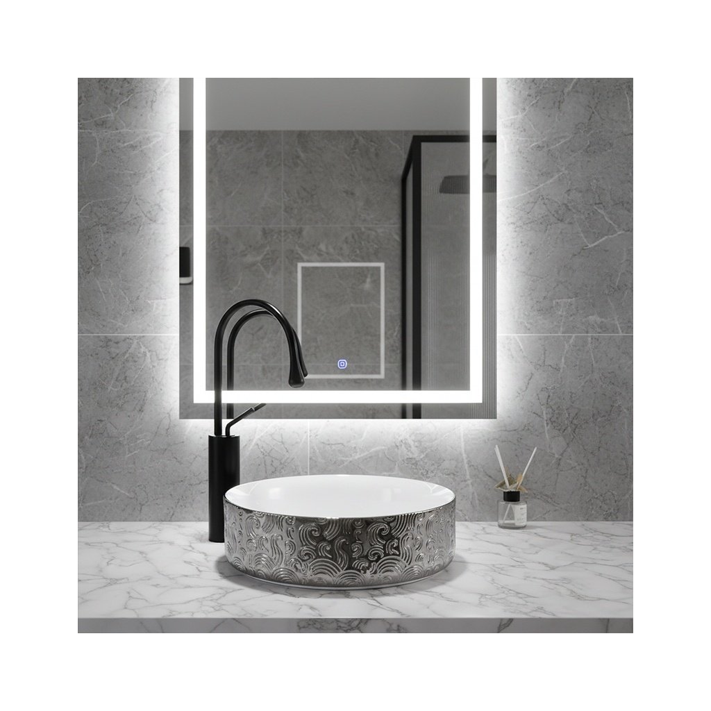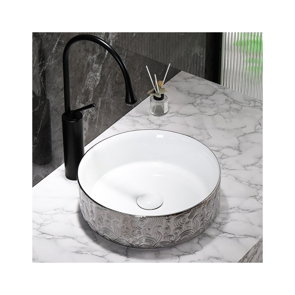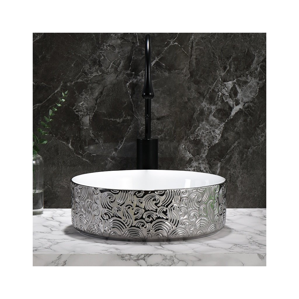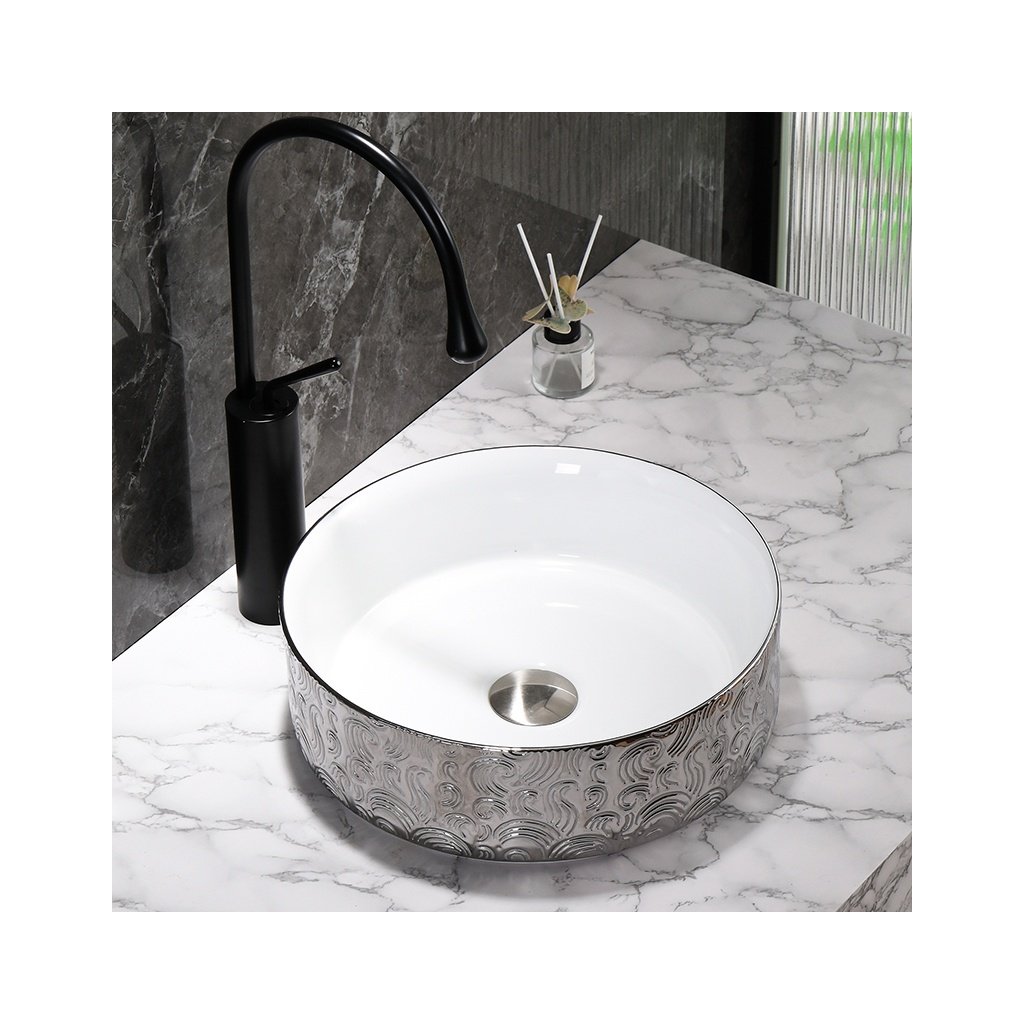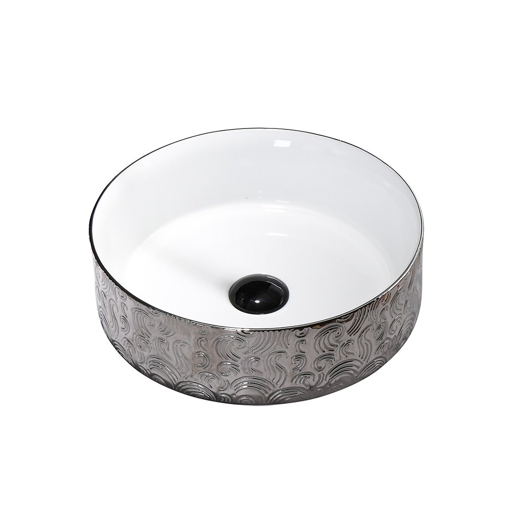 Keramické umyvadlo na desku HYD-LA-WH-SV-MOD3-360 36x36 cm, bílé/stříbrné