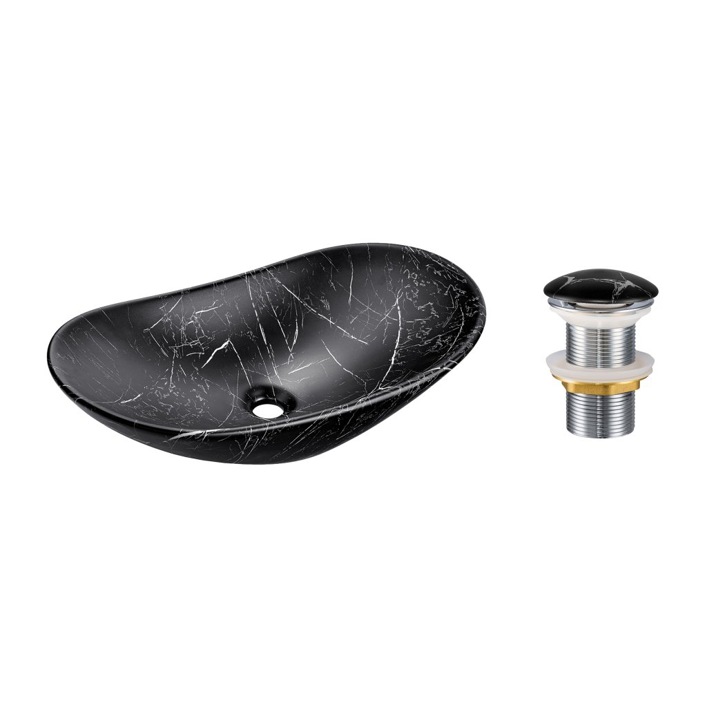 Keramické umyvadlo na desku Lena 61,5x36 černý mramor + výpusť Click-Clack černý mramor