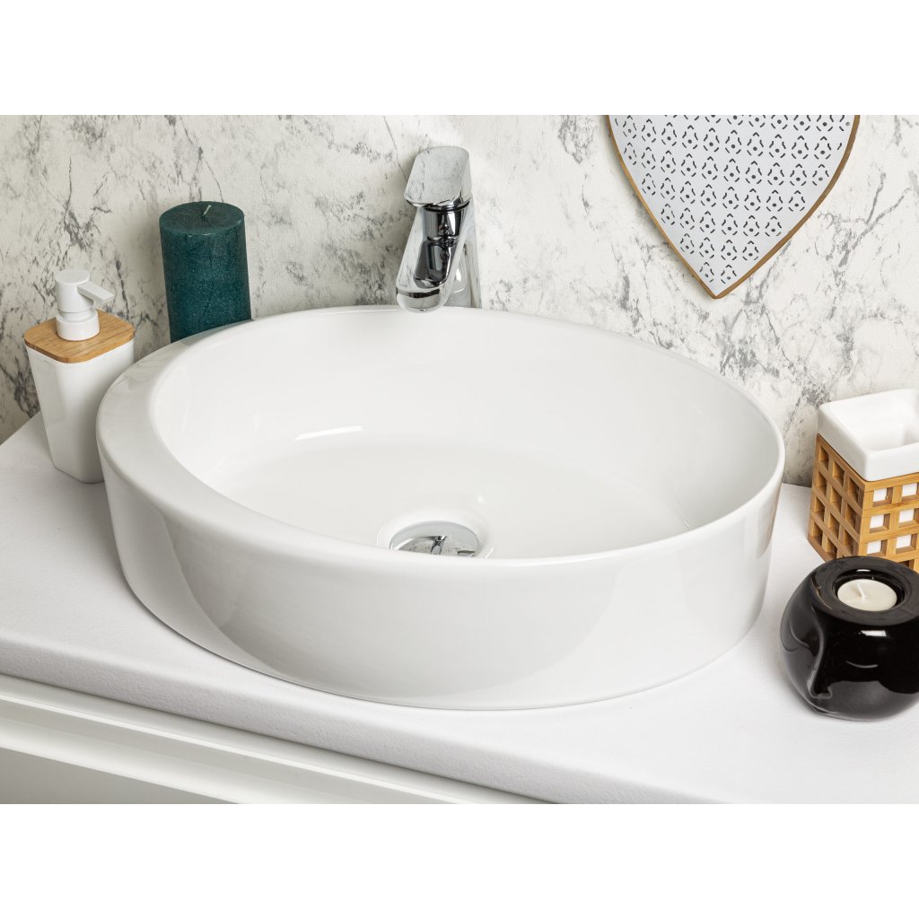 Dodejte své koupelně nádech luxusu a lehkosti s tímto oválným umyvadlem na desku NV-KR-9035. Jeho organický tvar bez ostrých hran působí v interiéru harmonicky a skvěle se kombinuje jak s moderním minimalismem, tak s klasickým stylem. Umyvadlo je navrženo jako volně stojící na desku, což dává vyniknout jeho elegantní siluetě a umožňuje vám variabilní uspořádání prostoru kolem něj.