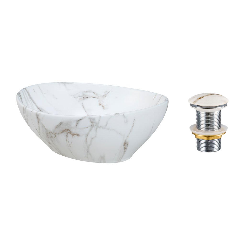 Keramické umyvadlo na desku Pati 40x33 bílý mramor + výpusť Click-Clack bílý mramor